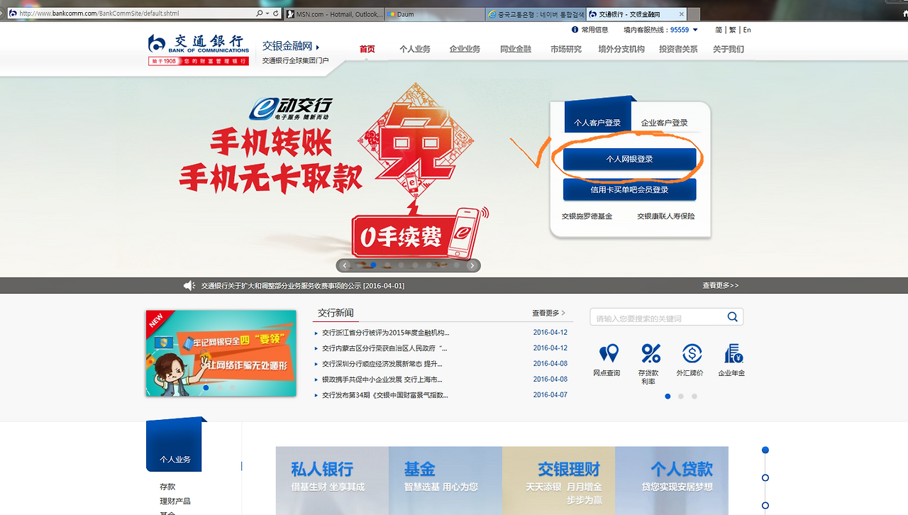 네이버에 검색해서 찾아낸 홈페이지 주소(다음에선 한국에 있는 교통은행 지점만 검색되더라. 쩝.) www.bankcomm.com에 호기 있게 들어갔다.