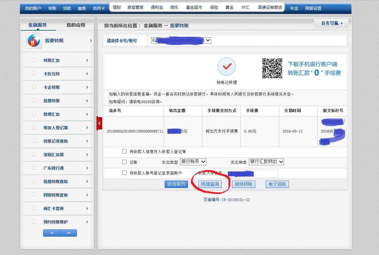 다시 송금 내용을 확인하는 위의 화면 아래로 1번에 받는 사람 전화번호, 2번에 '송금부언'이라기에 난 내 이름을 넣어줬다. 그런 다음 3번에는 은행에서 계좌 개설할 때 만든 거래 비밀번호. 한국은 4자리인데 여기는 6자리이다. 그러고 나서 4번을 누르면 내 중국 핸드폰으로 중국어가 복잡하게 쓰여있는 사이에 인증번호가 살짝 숨어있는 확인 문자가 날아온다. 대충 때려 맞춰보니 '은행 직원들은 절대로 네 비밀번호를 묻지 않으니 아무한테도 말하지 마라'라는 경고성 멘트랑 그 뒤에 오는 숫자는 내 카드번호 끝자리 4자리, 그다음 숫자는 내가 보내려는 이체금액, 그리고 그다음에 오는 것이 인증번호 6자리, 그리고 마지막 끝 2자리 숫자는 홈페이지에 나와 있는 숫자와 같은 숫자로 아마 인증번호 보낸 것을 확인하라는 숫자인 것 같다. 이걸 알기 위해서 또 한참의 시간 허비. 인증번호가 우리나라처럼 숫자로만 되어 있는 것이 아니라 영어와 숫자가 섞여 있어서 처음엔 이게 인증번호인지 뭔지 몰라서 한참을 버벅거리다 결국 맞이한 화면.
