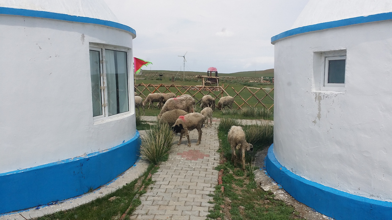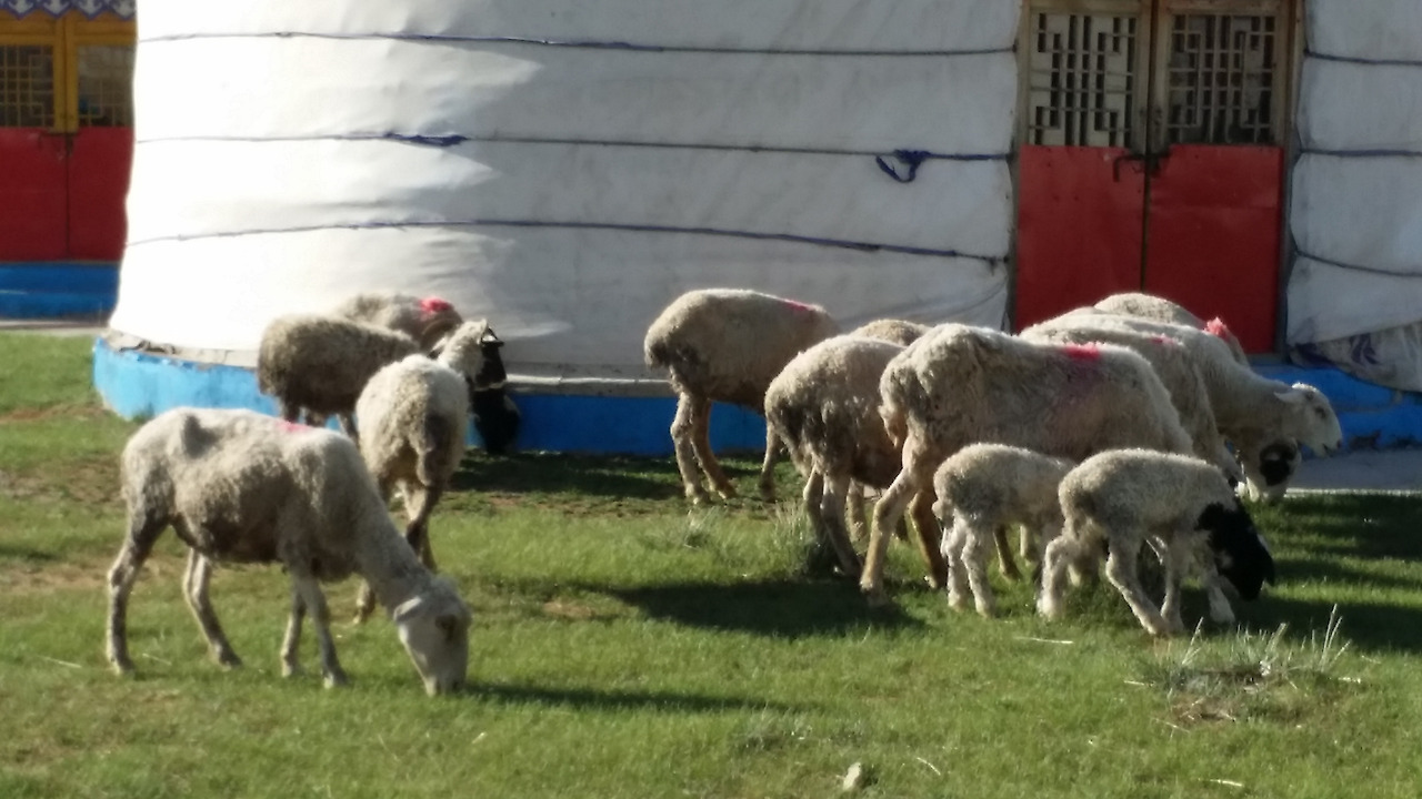 숙소를 배정받아 몽고 빠오로 가는 길에 양들이 먼저 길을 차지하고 있다. 만화에서 나오는 하얗고 털이 굽슬굽슬한 예쁜 양은 아니었지만 그래도 초원스런 분위기에 일조하고 있었다. 10여 년 전 초원에서는 천막으로 만든 몽골 전통에 좀 더 가까운 몽고 빠오(게르)에서 잠을 잤다. 널빤지 같은 것을 깐 바닥 위 침낭에 누우니 하늘에서 후두두두둑 비처럼 벌레들이 마구 쏟아져서 얼굴까지 수건으로 꽁꽁 싸맨 후 얼른 아침이 오기만을 기다렸었다. 그렇게 자는 둥 마는 둥하고 다음 날 일어나 보니 내 침낭에 수북이 쌓여있던 온갖 벌레들의 시체 때문에 참담했던 기억이 떠오른다. 지금은 거의 대부분의 몽고 빠오가 시멘트로 지어져서 벌레들의 습격은 걱정할 필요가 없을 것 같다. 다만 밤이 되면 뚝 떨어지는 온도 때문에 침대 위에 깔 전기매트가 꼭 필요할 듯하다.