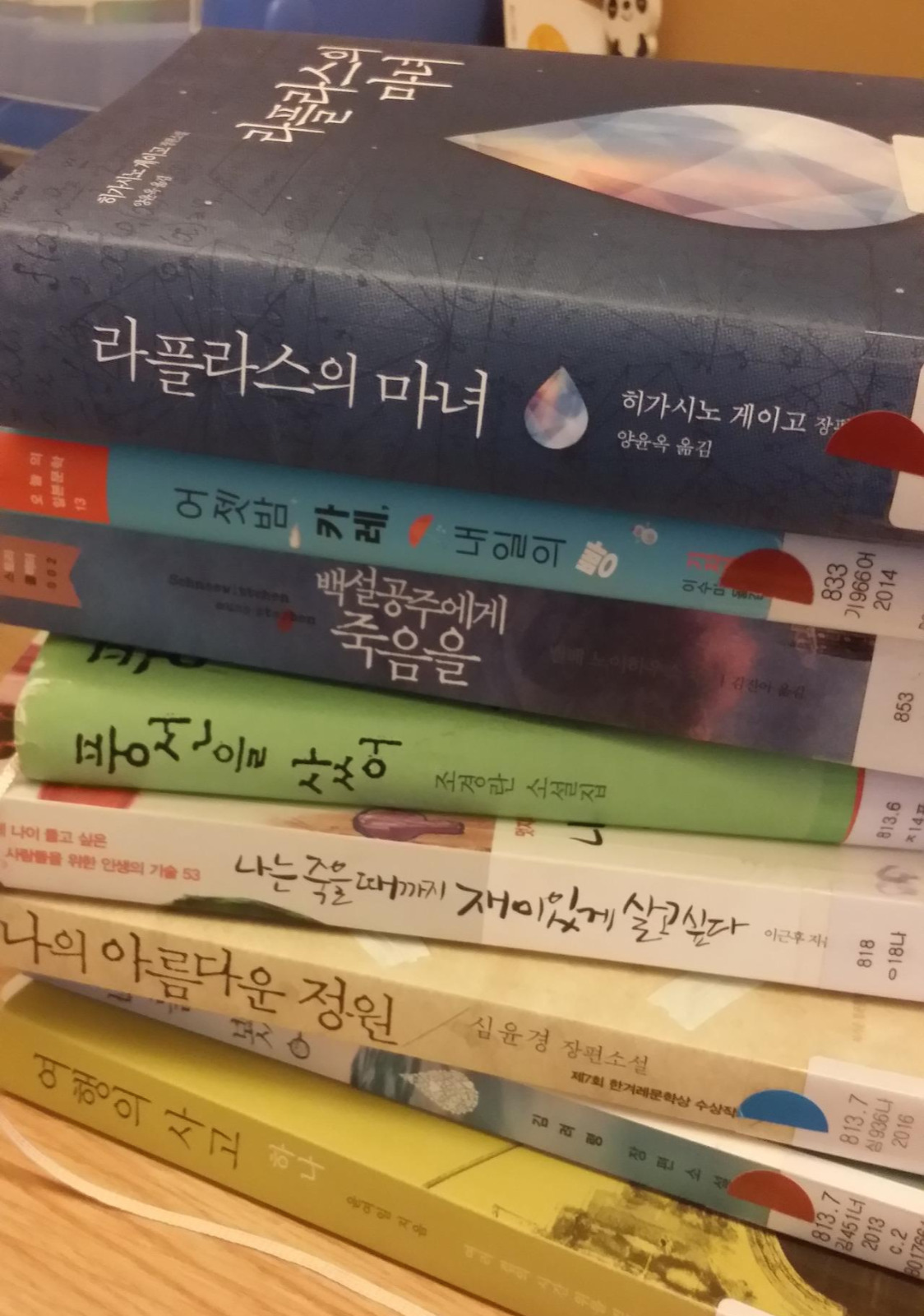 벼르고 별러 찾아간 왕징 작은 도서관(나의 기대가 너무 컸던 것일까? 한국에 있던 우리 집 서재보다 못한 장서량에 실망을 크게 하고 돌아왔던. 하긴 비영리를 목적으로 하는 도서관이 북경에 존재하는 것만으로도 고마워해야 할 것을...)과 신랑 학교 도서관에서 책을 빌렸다. 이렇게 발품을 팔아 빌려 온 책을 쌓아놓으니 이만큼. 아, 한동안은 뭘 읽을까 걱정 안 해도 되는 좋은 시절이다!