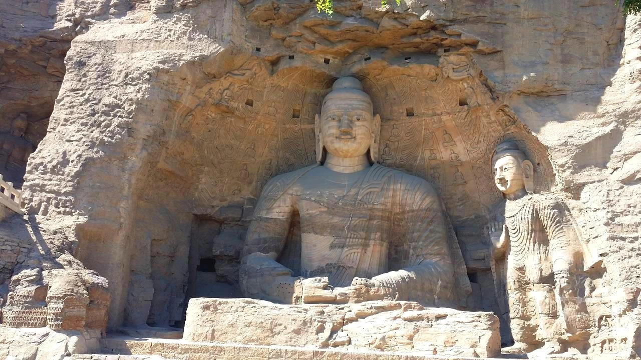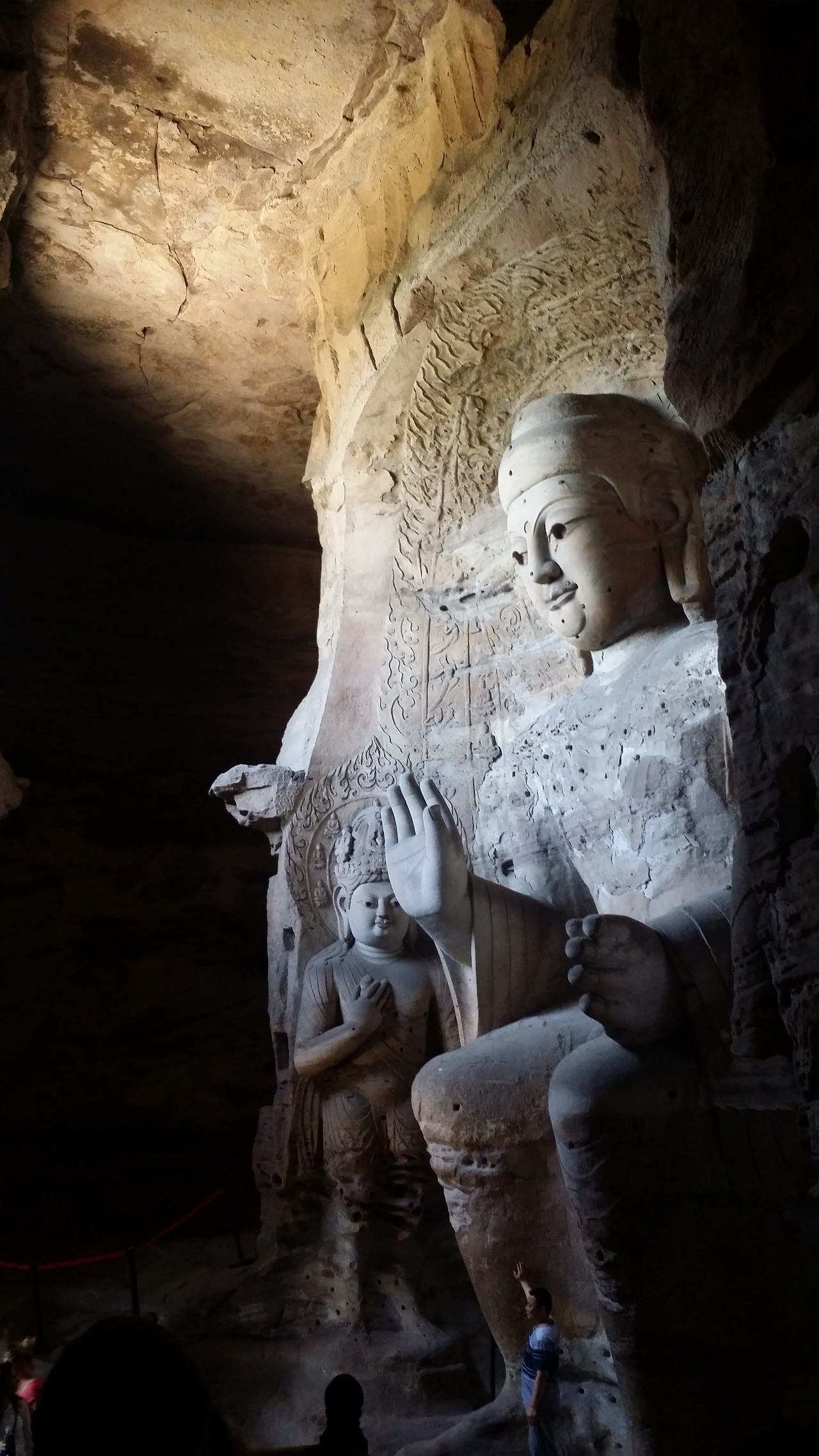 이것이 윈강석굴에서 가장 유명하다는 20번 굴의 노천대불상이다. 이 불상도 매우 커서 한 프레임에 담기 위해서 계속 계속 후진을 했더랬다. 굴 밖으로 불상이 공개되어 있음에도 불구하고 보존상태가 좋아 보였다. 특히나 미소를 머금고 있는 입꼬리를 보고 있으면 절로 편안해지는 느낌이다.