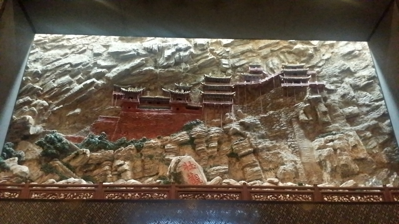 이것은 2층 올라가는 계단 벽에 설치되어 있는 현공사 부조. 우리가 내일 갈 곳이기도 한 곳을 이렇게 먼저 모형으로 볼 수 있었다.