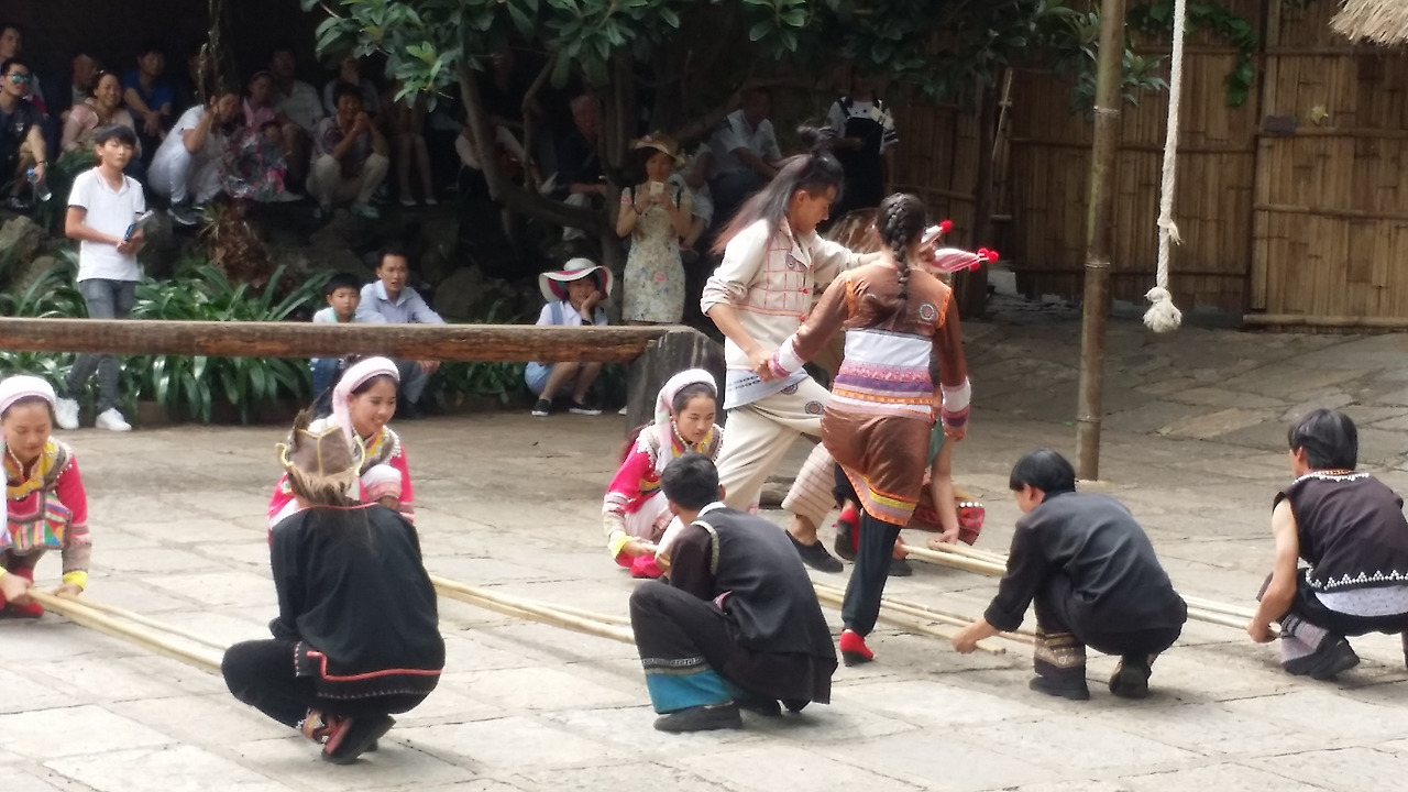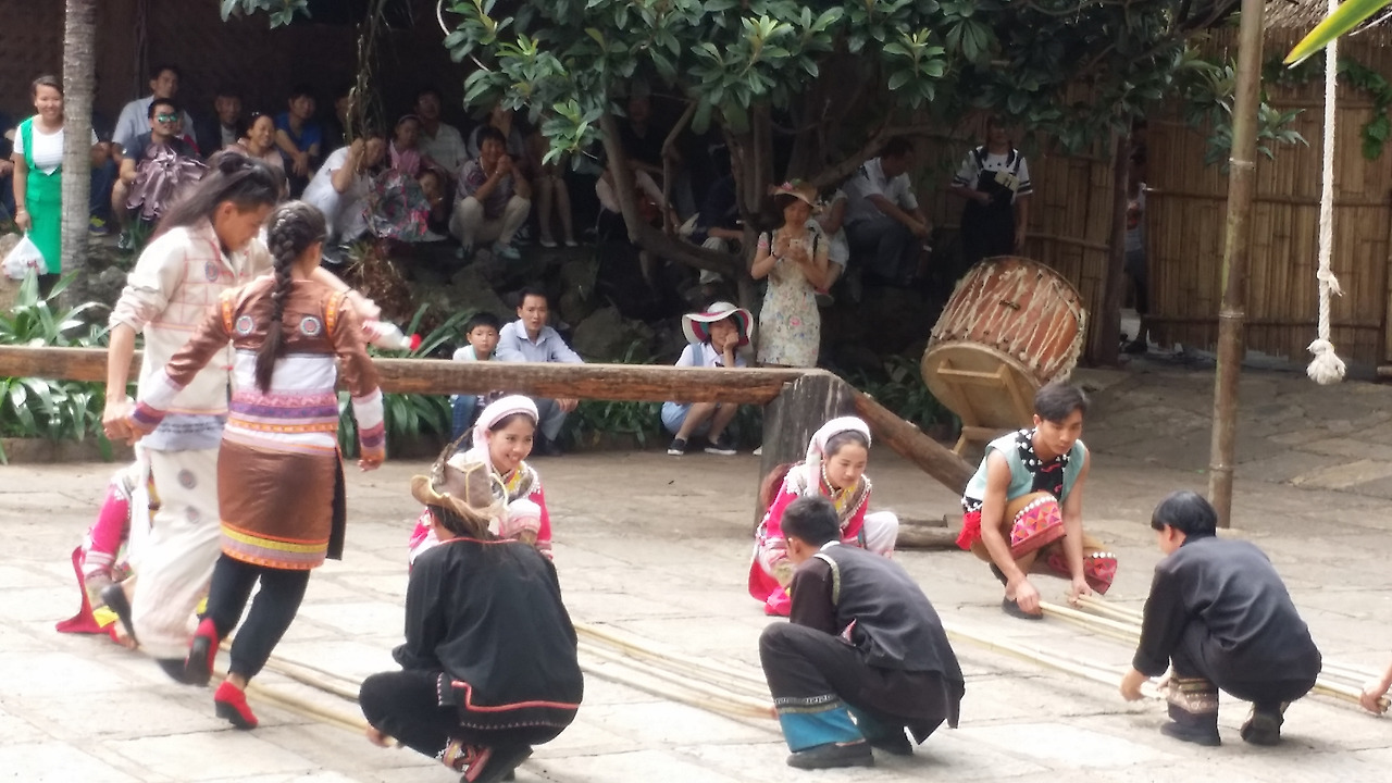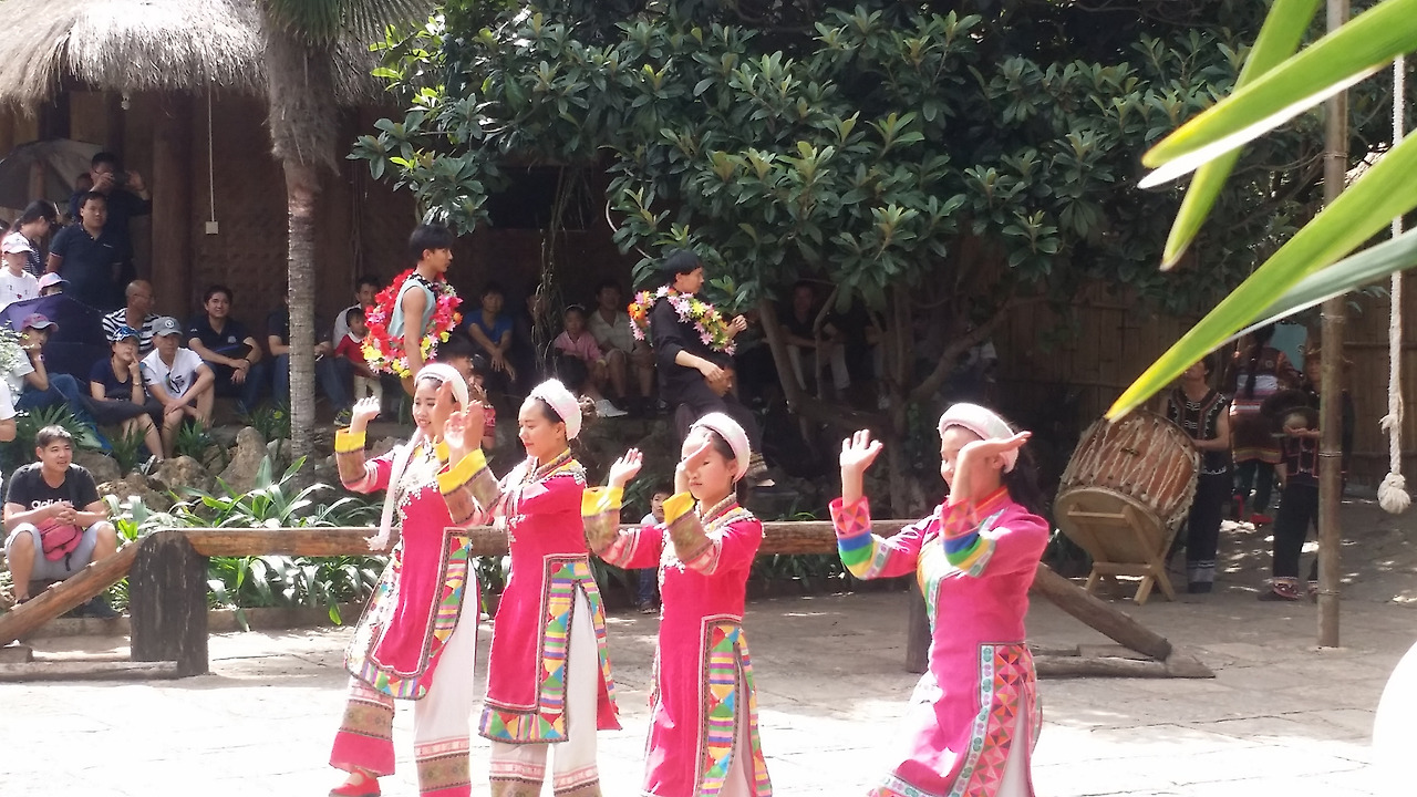 이 곳에 들어가면 '우와 넓다!' 이 생각밖에 안 든다. 다양한 소수민족 마을을 하나씩 자세히 보려면 하루 종일로도 안 되겠다 싶다. 그래서 먼저 점심을 먹고 보고 싶은 민족들 위주로 얼른 돌기로 했다. 소수민족 공연이 있는 곳 위주로 돌아도 한참이다. 각 민족별로 민족 특성이 드러나는 건물이 몇 채 서 있는 마을에서 전통 복장을 하고서는 전통 춤과 노래 등으로 공연을 한다. 공연이라는 게 엄청나게 화려하고 잘 갖춰진 것은 아니었지만 소소하게 볼거리를 제공한다.