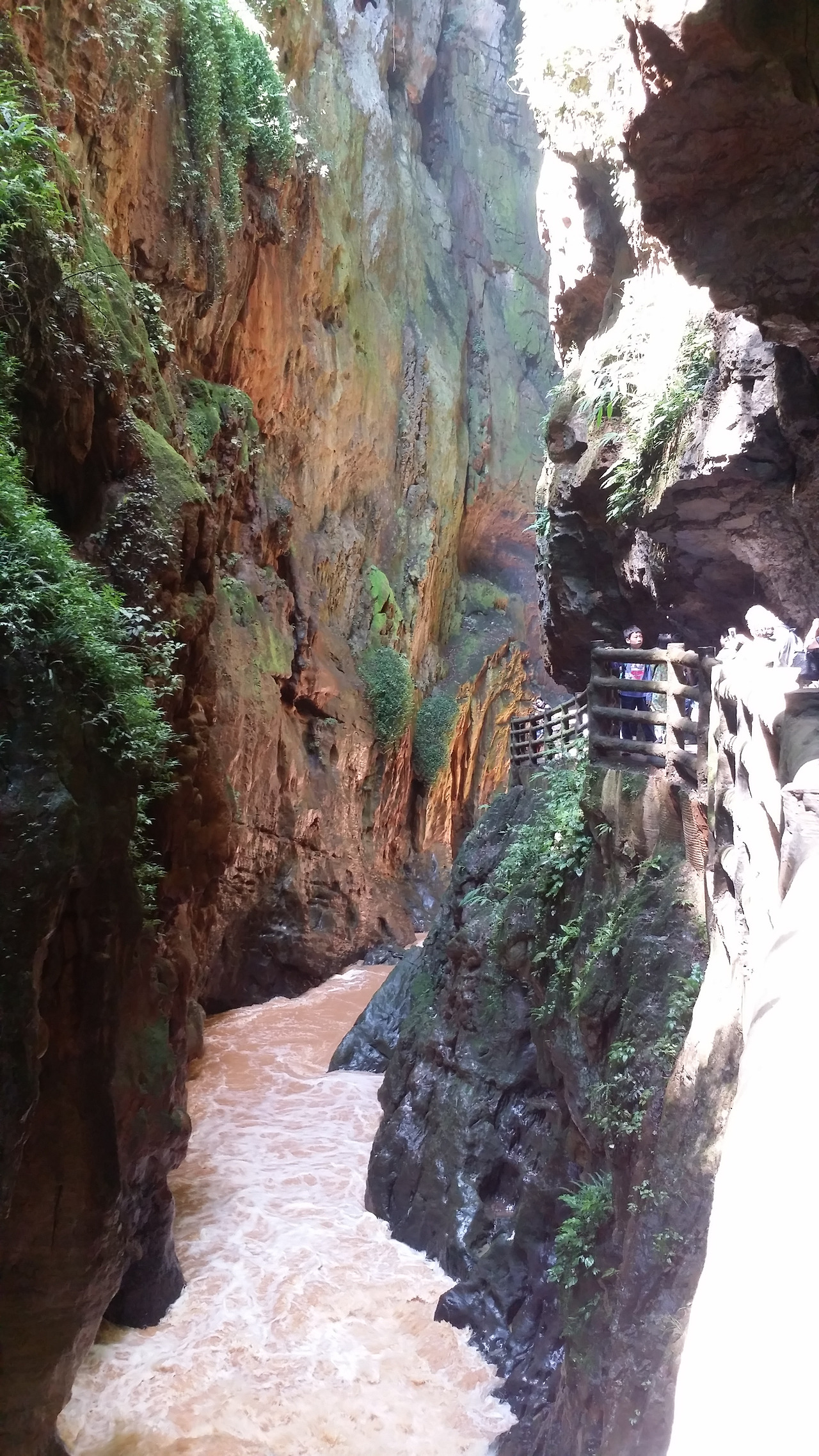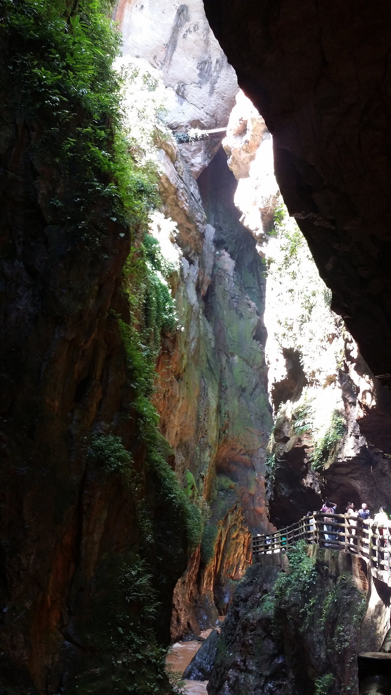내려가는 길은 석굴 내의 계단과 절벽에 나 있는 길로 이루어져 있었다. 내려가면서 석굴이 신기하여 이것이 자연적으로 만들어진 것일까 인공적으로 만든 것일까 우리끼리 마구 떠들고 있었는데 갑자기 '만든 것이야요!'하는 대답이 들렸다. 중국인들 속에 한국인 아주머니가 섞여 계셨던 것이다. 중국에 오래 사셨는지 이 곳에 대해 잘 알고 계신 것 같았다. 여기서 새로 생긴 버릇이 있는데 상대방이 못 알아들을 거라 생각하고 혼잣말 같은 걸 그냥 큰 소리로 해버리는 거다. 열에 아홉은 못 알아듣지만 가끔 한국인이 알아들을 때면 땀이 삐질!