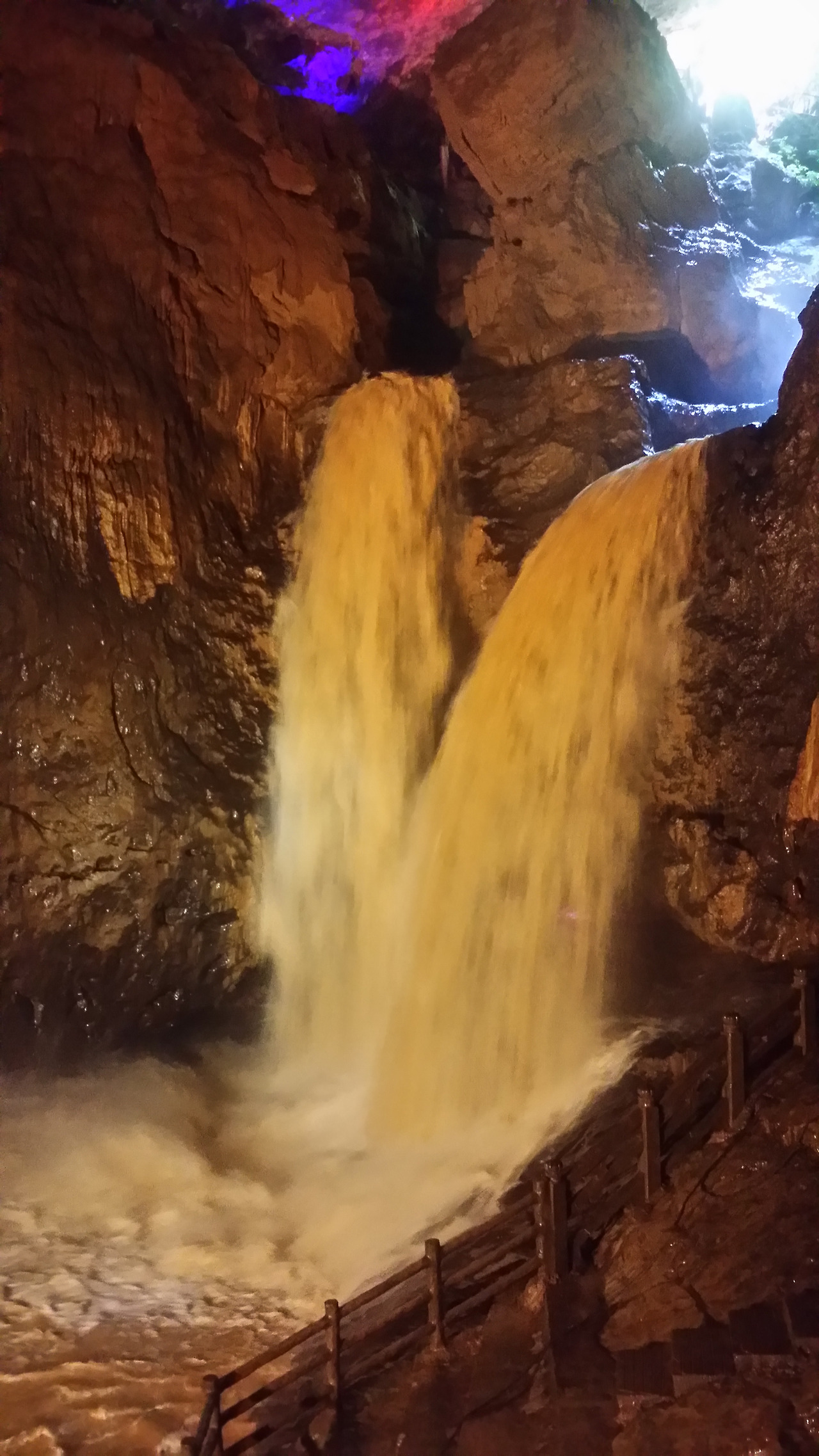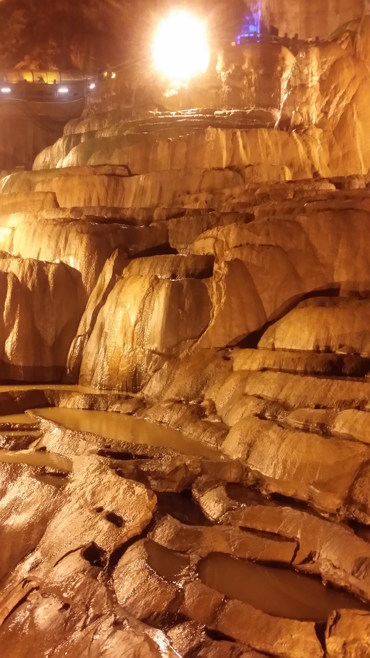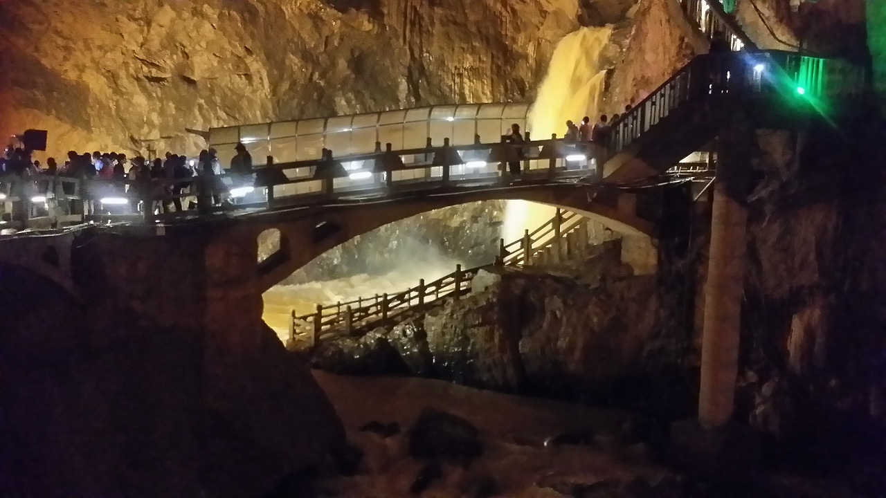 저렇게 엄청난 물이 흐르는 계곡을 끼고 걷다 보면 비로소 동굴이 나타난다. 동굴 안에는 석회동굴에서 볼 수 있는 다양한 석순과 종유석 들이 가득하다. 우리나라 동굴에서도 보았다마는 여기는 크기와 규모로 압도한다.