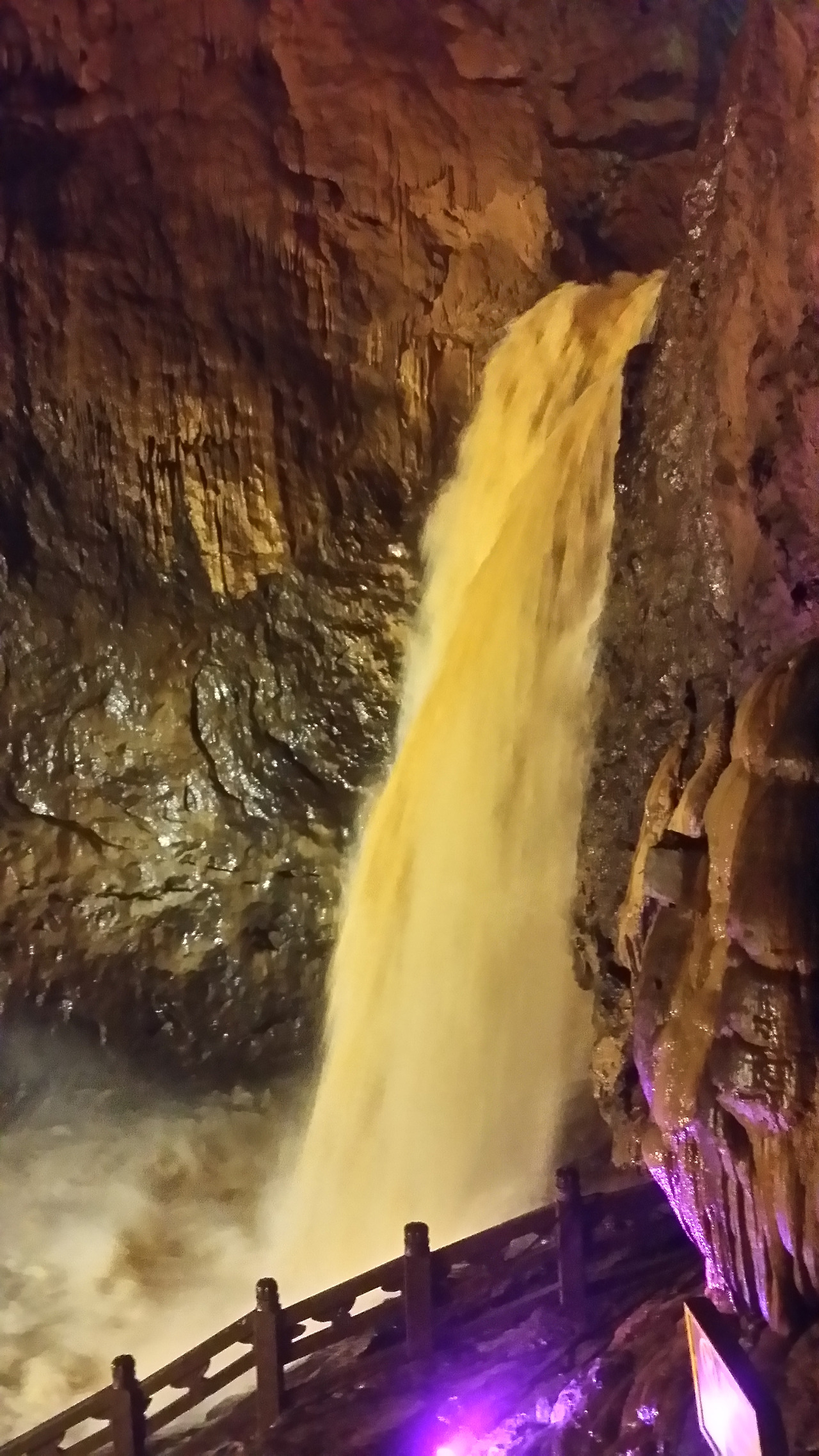 동굴 안에 없는 게 없다. 저렇게 큰 폭포도 있다. 그리고 매점과 휴식 공간도 있다. 동굴 안에서 동굴음악회가 열린 적도 있고 소수민족인 이족(彛族)이 공연하는 동굴 공연장도 있단다. 그리고 동굴 끝부분에는 인력거 꾼들이 대기하고 있었다. 여기까지 걷는 데도 한참 걸렸는데 인력거꾼이 대기하고 있다는 것은 앞으로 남은 길은 '죽음'이라는 뜻이다. T.T