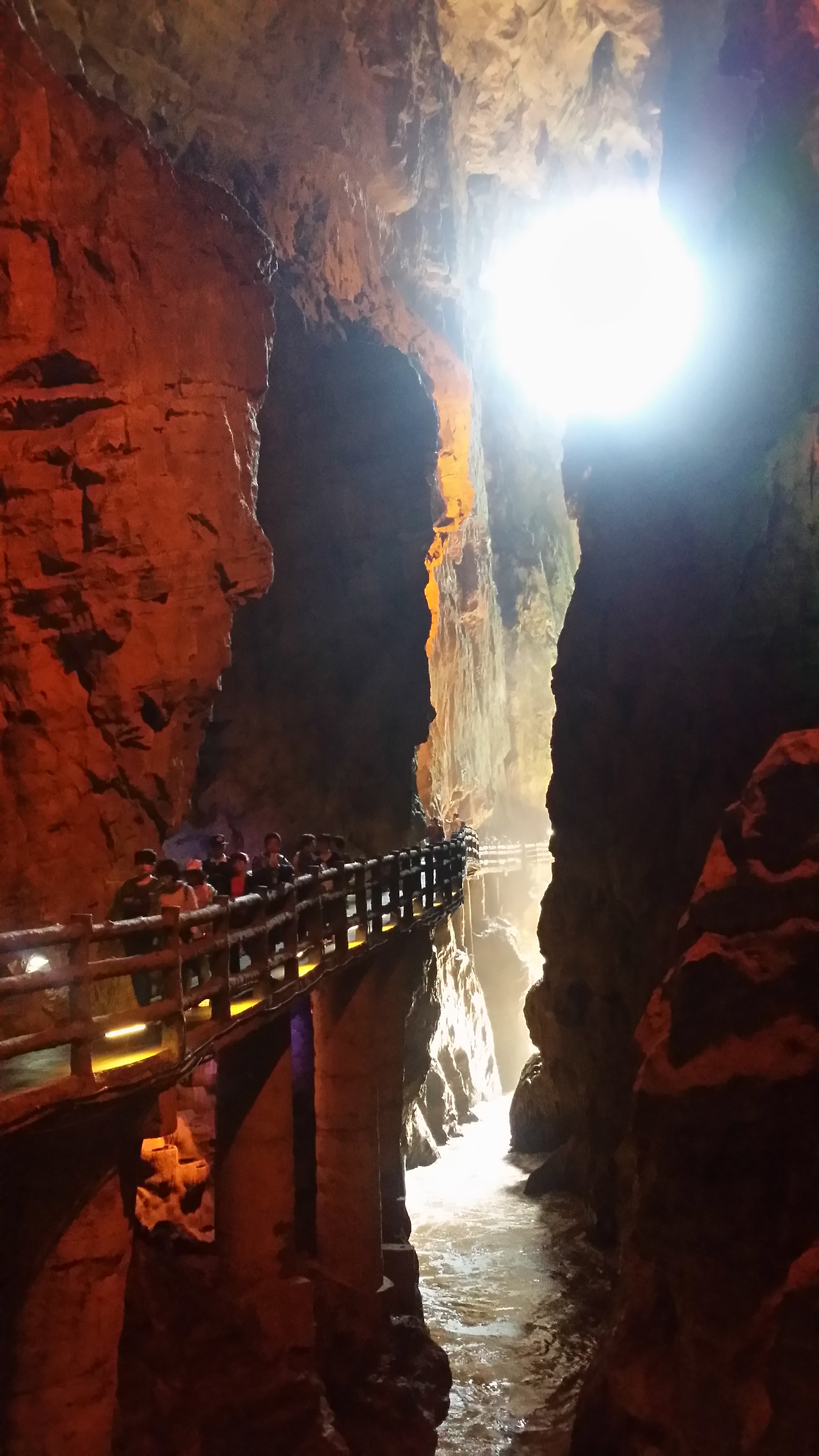 여행 4일 차도 만만치 않은 일정이다. 오전에 간 곳은 주샹동굴(九鄕洞窟, 구향동굴)이다. 구향동굴은 길이가 3000m가 넘고 옥주동, 백옥동 등 크고 작은 방이 1000개 이상 있단다. 관람권을 끊고 들어가서 협곡관광삭도(엘리베이터)를 타고 아래로 내려가야 동굴 내부로 들어가는 길이 나온다.