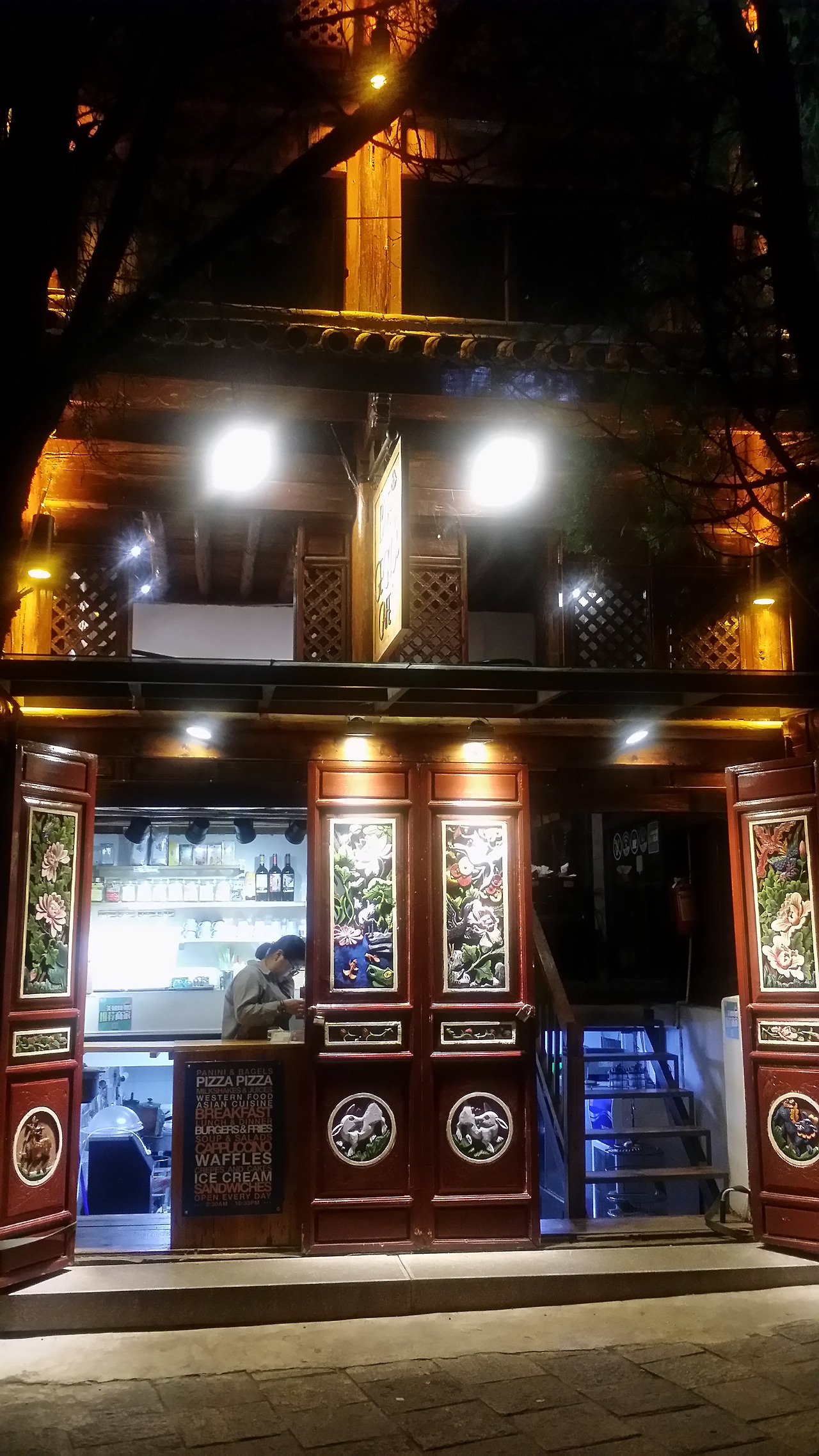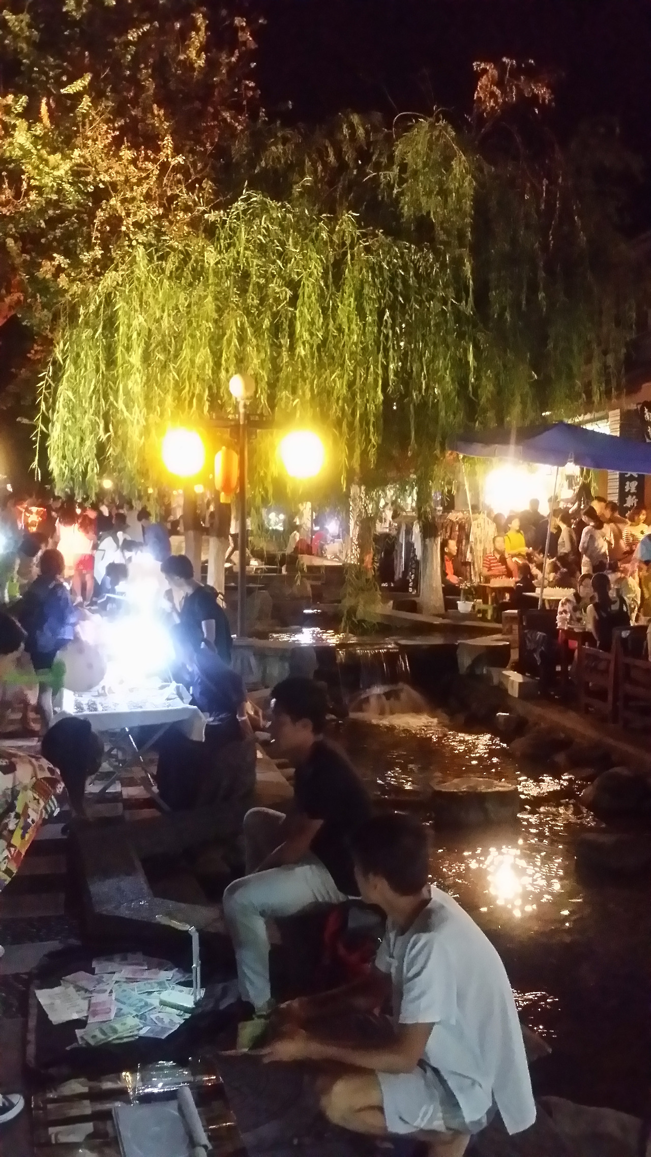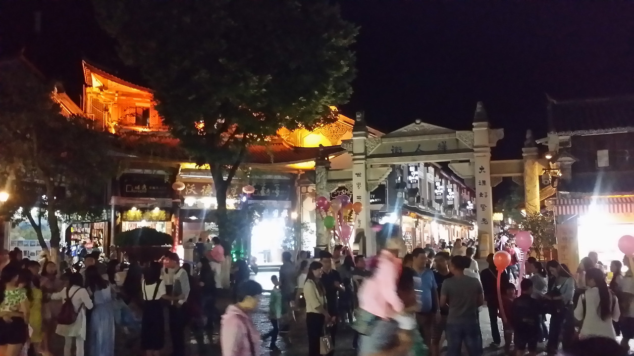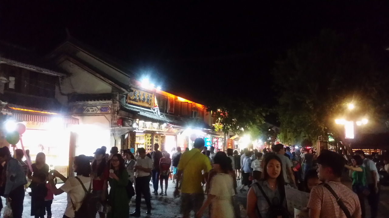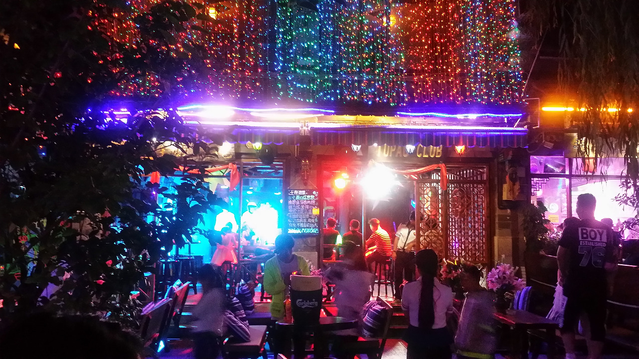 숙소에 돌아가기 위해 큰길에 들어섰다가 우리는 마지막으로 기함을 토하고 말았다. 꿍짝꿍짝 울려대는 음악소리, 뿌연 스모그, 천사 옷 입고 무대에서 춤추는 무희들... 아, 여긴 클럽 거리인가 보다. 고성 내의 클럽 거리, 정말 안 어울린다 싶은데 여기 말고 리장고성, 수허고성도 나중에 가보니 마찬가지이더라. T.T 얼른 숙소로의 발걸음을 재촉할 수밖에...