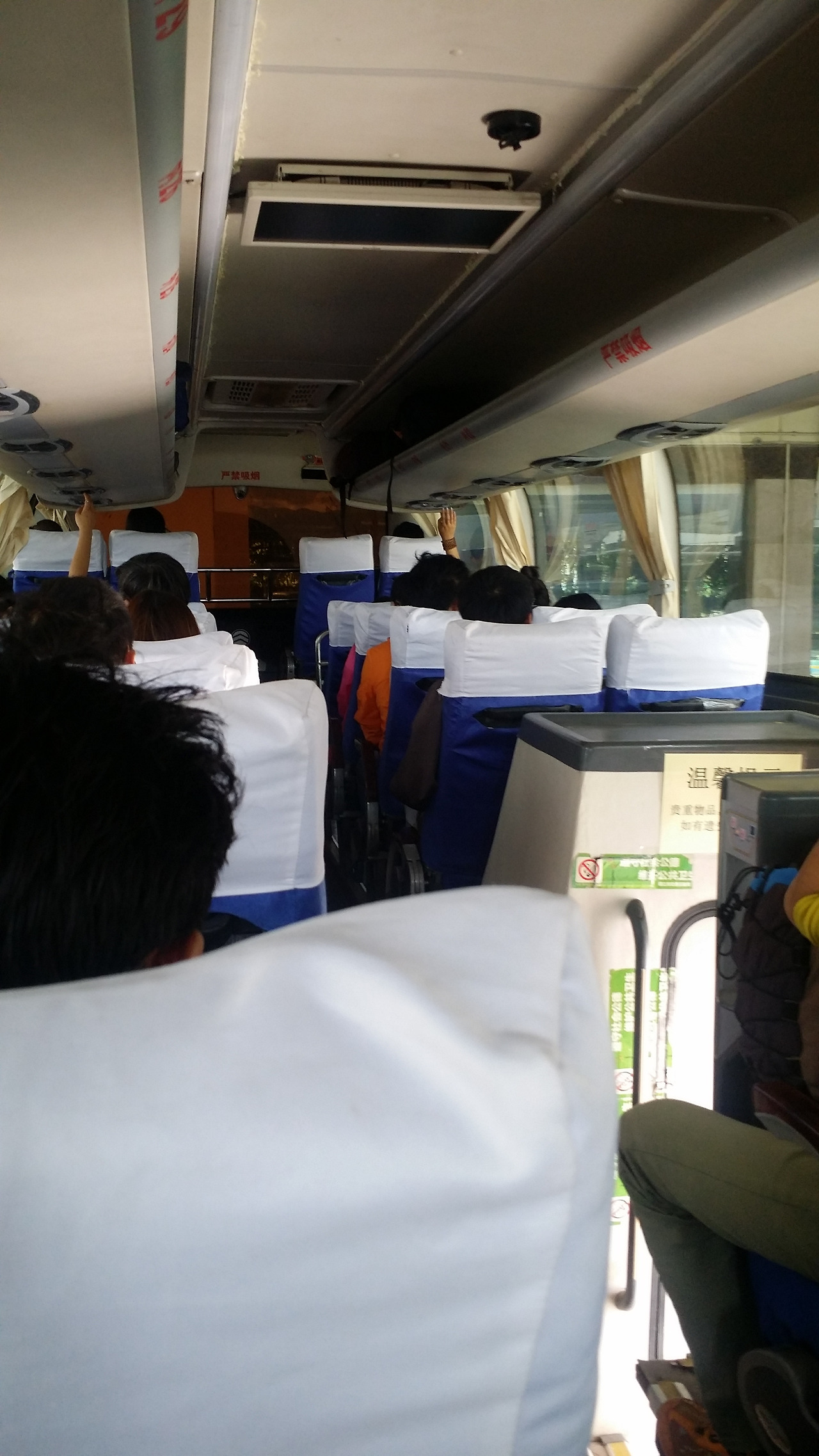 이번 여행 중 가장 상태가 훌륭했던 리장 행 버스. 버스표를 살 때 판매원에게 버스 차량 번호랑 시간을 확인했고 다시 표 검사하는 사람에게 저 버스가 맞냐고 손짓 발짓으로 확인까지 하고 탔다. 그런데 이미 버스 안은 만원. 우리 좌석에도 다른 사람이 앉아 있었다. 뭐 한 두 번 당한 일이 아니라(버스마다 좌석 번호를 매기는 순서와 방법이 달라서 자리를 잘못 찾고 흠짓 놀란 적이 많았다.^^) 그다지 놀라지 않고 다시 한번 좌석 번호를 확인하고 우리 표랑 비교해봤는데 역시나 우리 좌석에는 다른 사람이 앉아 있었다. 이건 또 무슨 상황이지 하고 있는데 안내원으로 보이는 사람이 올라오더니 큰 소리로 뭐라고 이야기를 했다. 그러자 앉아 있던 사람의 반 정도가 우르르 내려서는 옆에 있는 다른 버스로 옮겨 탔다. 비슷한 시간 대에 출발하는 리장행 버스 2대가 나란히 있어 착각하고 올라탄 사람들(그렇게 믿고 싶다. 조금이라도 먼저 가려고 이 버스에 모르는 척 올라타 있던 게 아니라)이 있었던 모양이었다. 그렇게 우리의 자리를 다시 되찾고 살펴보니 아싸! 저 쪽 버스보다 우리 버스가 훨씬 좋아 보였다.^^ 그렇게 기분 좋게 출발했다. 이제 4시간 정도 이동해서 리장에 도착하면 새로운 곳인 수허고성에서 1박을 하면 된다.