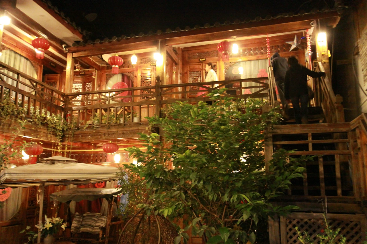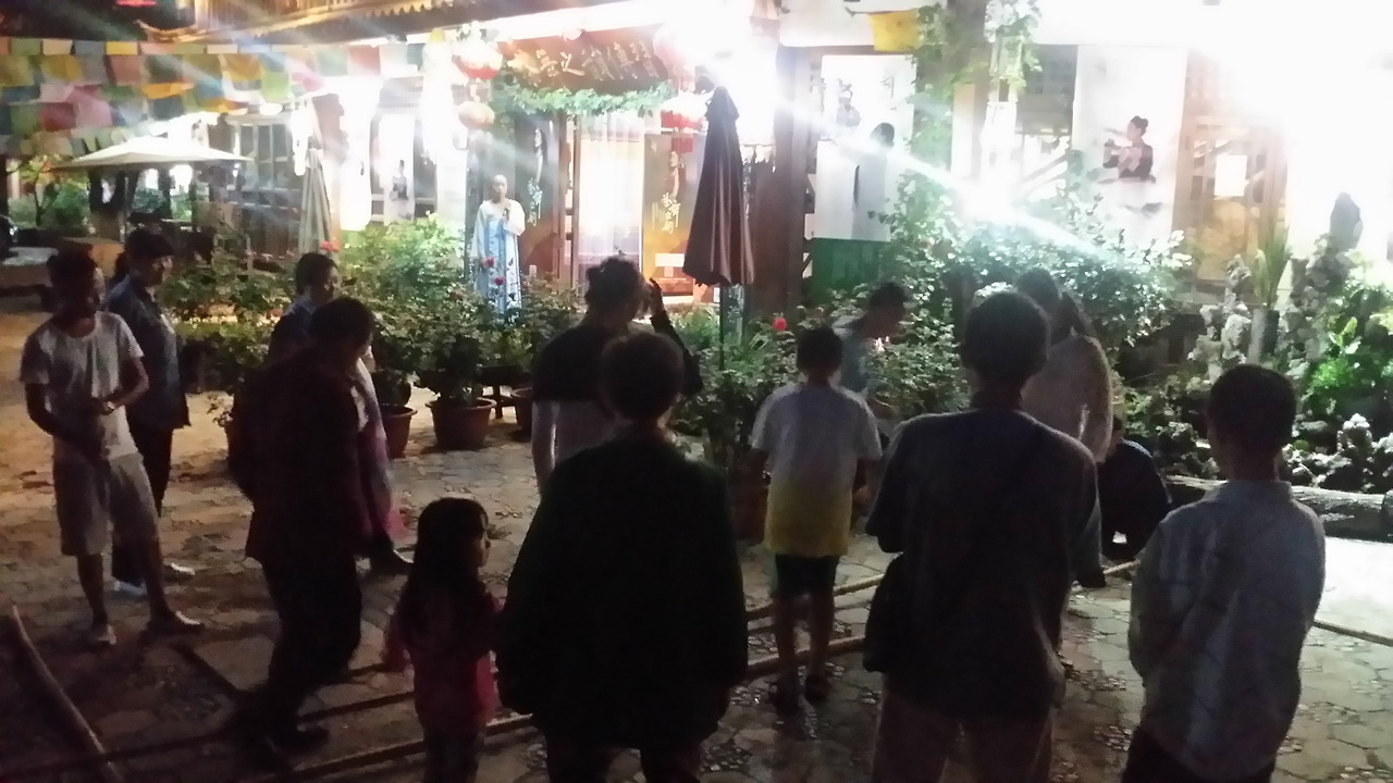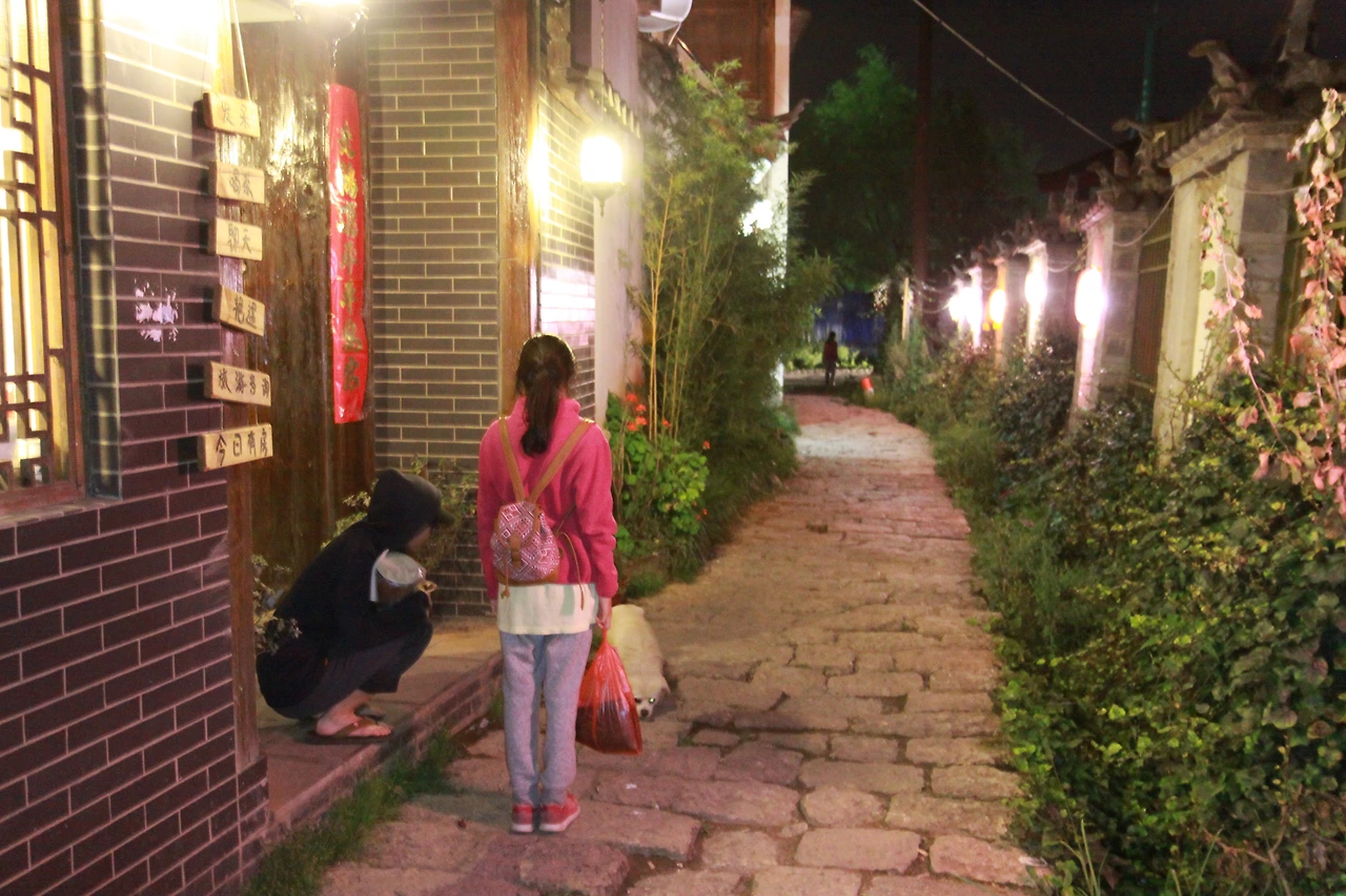친절하게 우리를 맞아 준 객잔 주인 부부가 또 다른 손님인 중국 여대생 2명에게 우리의 안내를 부탁했다. 이미 고성을 한 바퀴 돌아보고 온 여대생들이었지만 흔쾌히 우리를 고성 중심부까지 안내해줬다. 규모가 작아 그런지 훨씬 더 가족적인 분위기? 함께 전통놀이를 하는 사람들도 보이고 카페거리도 리장고성처럼 정신없지는 않았다.