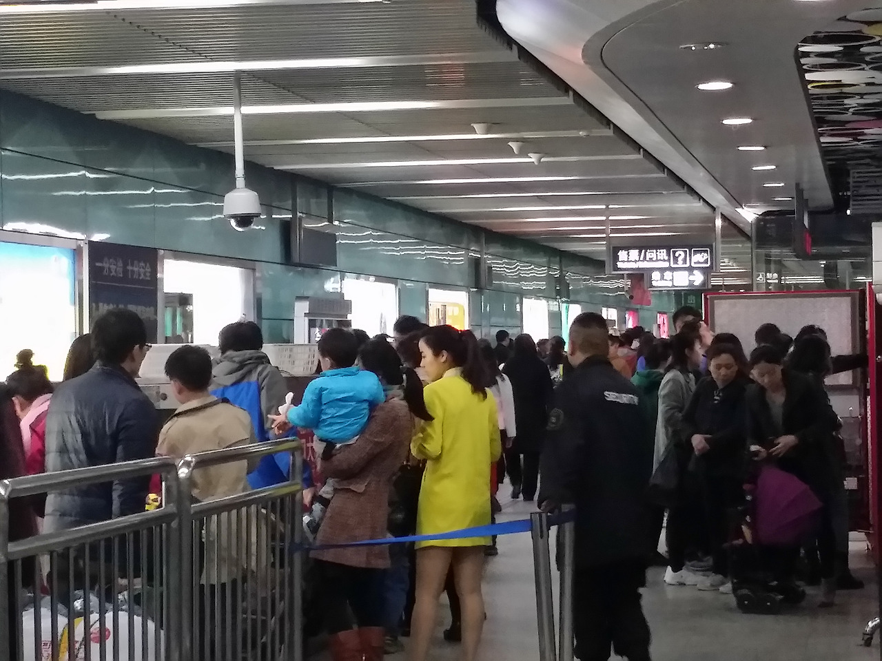 첫 주말 나들이는 처음으로 중국에서 지하철을 타는 것으로 시작하였다. 지하철은 우리나라처럼 복잡한 노선도를 자랑하고 있었다. 지하철을 탈 때 검색대를 거쳐야 하는 것을 빼고 다른 것은 거의 우리나라와 비슷하였다. 공항 검색대처럼 가방은 벗어 검색대를 통과시켜야 하고 사람은 따로 검색을 받아야 하는데, 검색받는 게이트는 한 군데밖에 없어 사람이 몰리는 출퇴근 시간에는 이것이 가능할까 싶다. 실제로 우리가 탔던 우리 동네 지하철 역은 검색대가 한산했지만 좀 더 시내로 들어가자 출퇴근 시간이 아님에도 사람이 많이 몰리고 있었다.