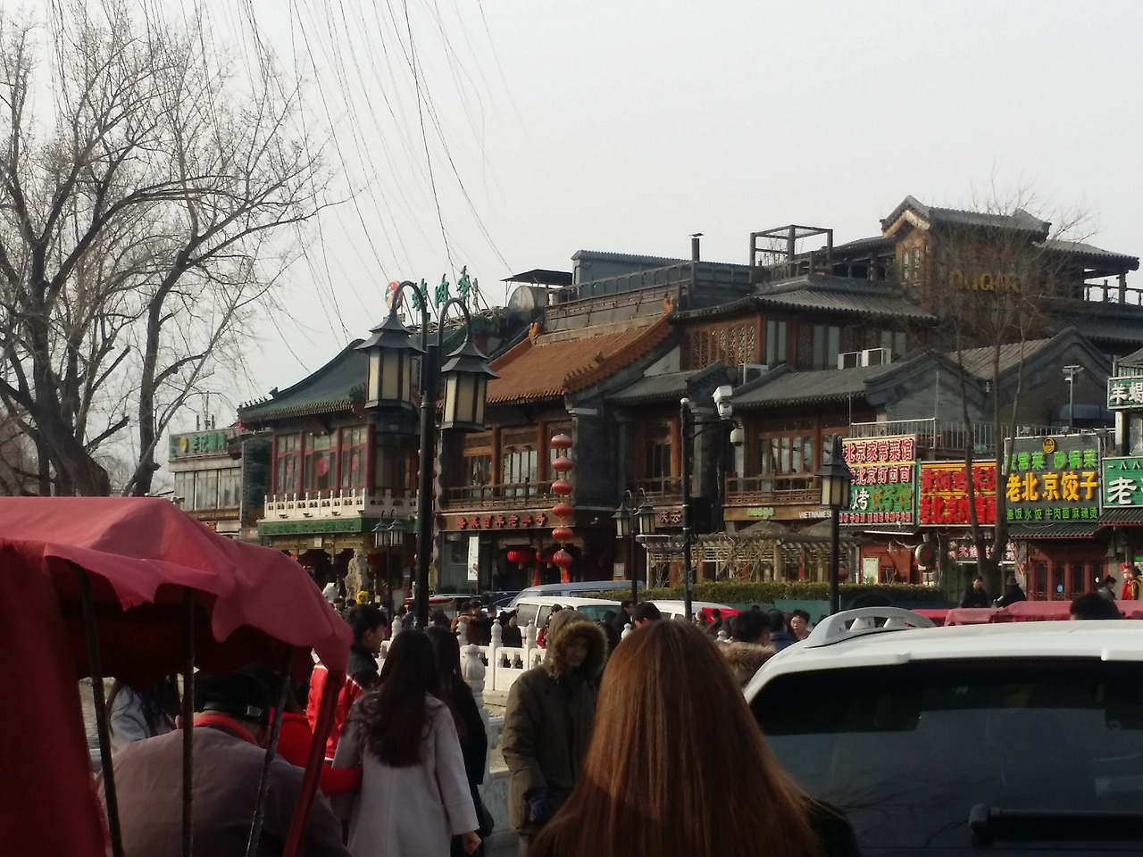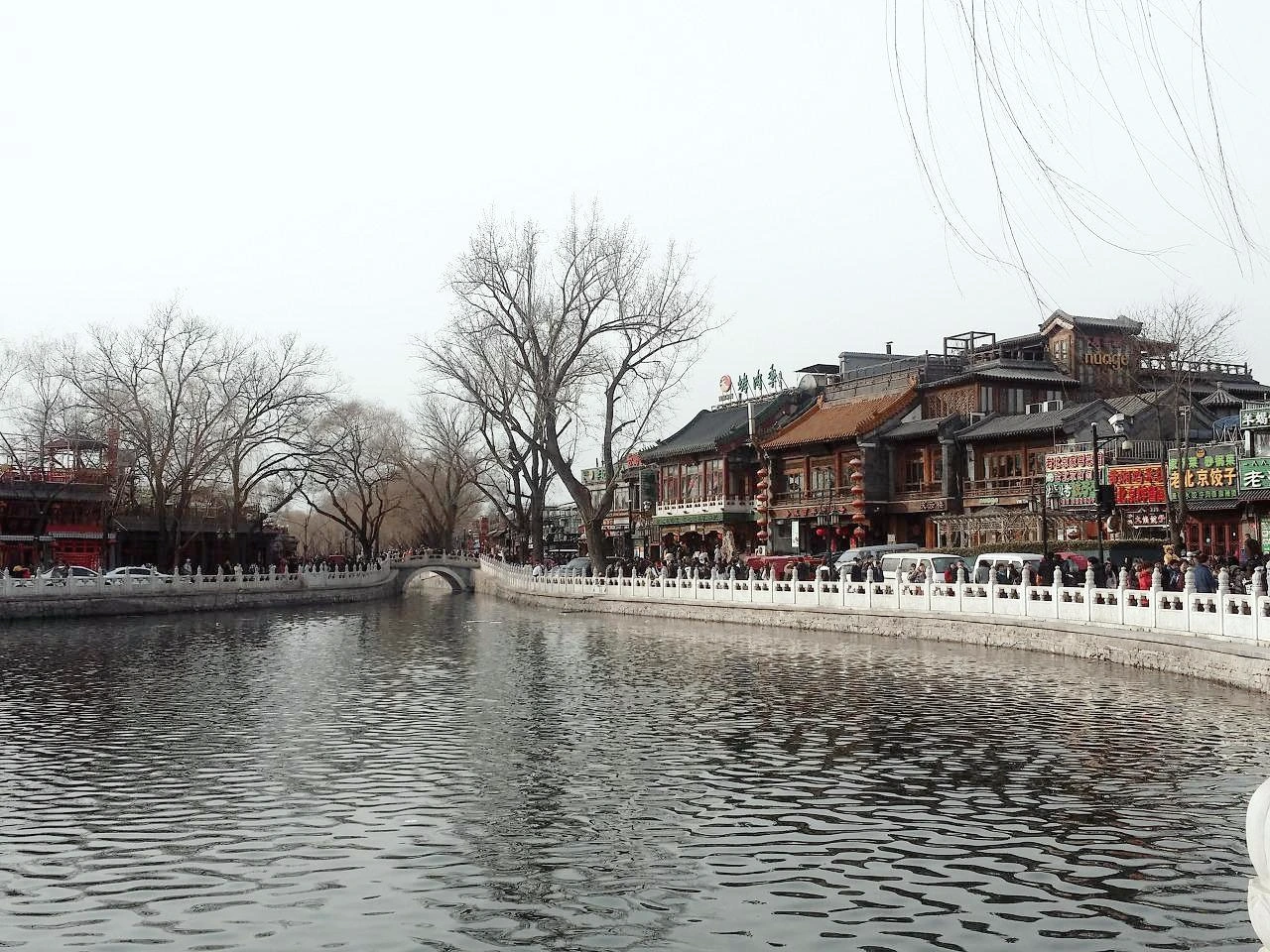 그렇게 거리를 좀 걸어가자 스차하이(십찰해-원나라 때 10개의 사찰이 있었다는 인공호수)라는 커다란 인공호수가 나왔다. 몇 년 전 중국에 왔을 때부터 느낀 점이지만 중국은 정말 크다. 뭐든지 크기로 압도한다. 그런데 조금만 자세히 보면 세밀하거나 정교하지는 않은 것 같다. 처음엔 그게 실망스럽고 짜증스러웠다. 그런데 이젠 그게 중국답다. 그런 것쯤 가볍게 넘어가는 호기로움! 여기 인공호수도 가까이 가서 자세히 보면 그다지 아름답지 않다.^^ 호수가를 따라 카페며 다양한 바들이 즐비하게 늘어서 있어 다양한 라이브 공연들을 하는 것으로 보아 밤이 되면 연인들을 위한 더 다양하고 활기찬 모습을 보일 것 같은 장소였다. 어디든 왜 물가를 따라서는 데이트 코스에 해당하는 거리가 조성되는지, 사람의 감정이 물을 보면 감성적이 되어서일까?