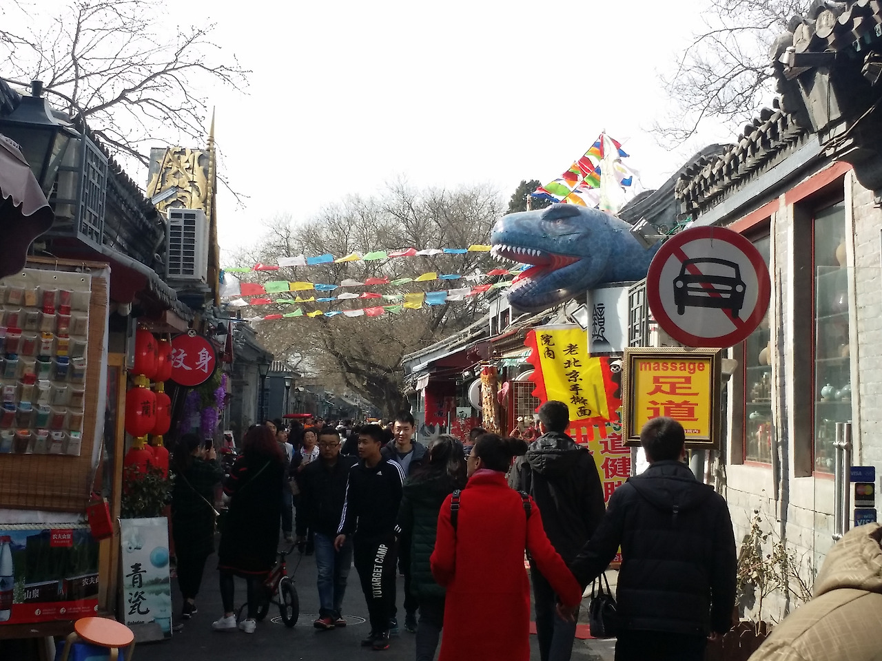 첫 주말 나들이 장소는 아이들이 책을 보고 한참 고민하여 선택한 난뤄구샹이라는 곳이었다. 발음하기도 힘든 그곳이 무얼 하는 곳이냐 했더니 엄마가 좋아하는 카페도 있고 자기들이 좋아하는 기념품 가게도 있는 그런 예쁜 거리란다. 그래서 좀 찾아봤더니 북경의 후퉁(주로 중국의 수도 베이징의 구 성태를 중심으로 산재한 좁은 골목길. 중국의 전통적 가옥 건축인 쓰허위엔이 이 후퉁에 많이 접하고 있어 베이징의 옛 모습을 볼 수 있어서 관광지로 선호되고 있지만 개발이 진행되고 흉물이라고 하여 정리하는 추세에 있어 현재 일부만 보존되어 있는 상태) 거리였다. 그중 난뤄구샹은 젊음의 거리라고 해서 특히 외국인들과 젊은 사람들이 많이 찾는 후퉁 거리 중 하나였다.