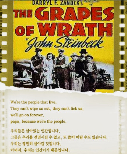 과거의 역사는 미래의 거울이며, 역사는 현재와 과거의 끊임없는 대화라고 한다지요. 퇴근 후 책장에서『분노의 포도』표지의 먼지를 털어 내고 아침에 산 청포도 한 알 터트려 씹어 가며 읽어 봅니다. 포도 맛은 여전히 시큼 달콤하지만 제 기분은 그리 달지만은 않습니다.