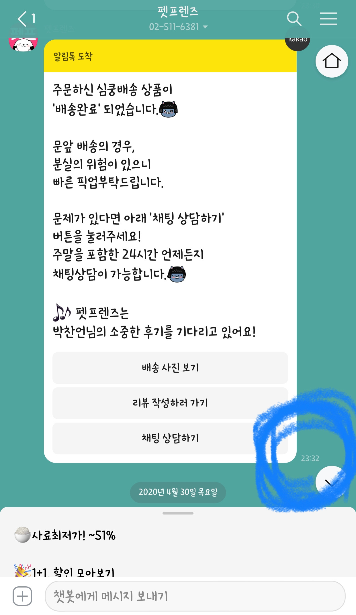 응? 주문한 지 1시간도 채 되지 않는 시간이었는데 배송완료 알림톡이 날아왔습니다. 믿기지 않았습니다. 현관문을 열고 나가보니, 정말 덴탈껌이 도착해 있었습니다. 이 황당한 서비스는 펫프렌즈만의 최대 킬러 포인트라고 생각하는, ‘심쿵배송’ 입니다. 알려진 2시간 이내 배송보다 빠른 1시간 이내 배송이었습니다. 저에게는 큰 충격이었습니다. ‘아니 이게 어떻게 가능하지?’라는 생각에 헤어 나오지 못했습니다. 이후로도 한 달 평균 1.5회 지속적으로 이용해봤지만, 2시간을 넘기는 일이 결코 없었습니다. 대체 이게 어떻게 가능한 것일까요? 쿠팡 로켓배송보다 빠르다니요. 아니, 웬만한 배달음식보다 빨랐습니다.