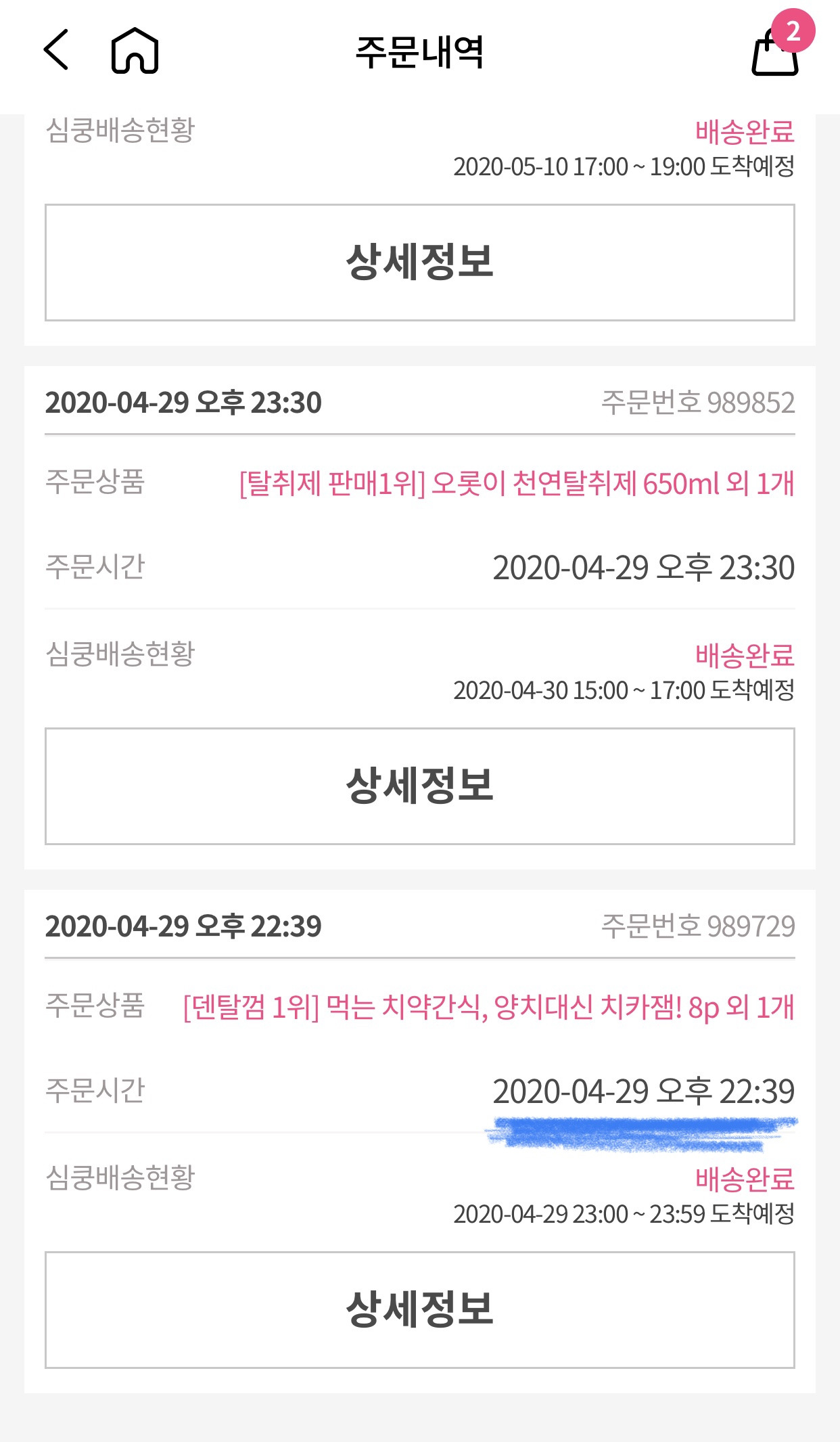 - 저녁 10시 39분 : 주문 결제 완료