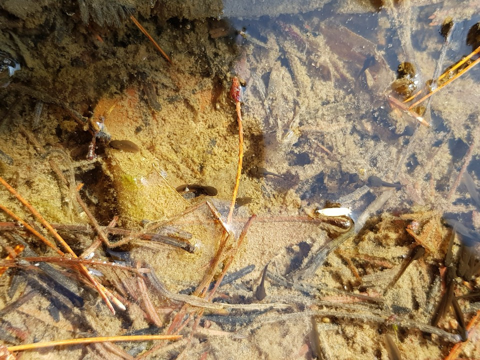 따뜻한 쪽에선 벌써 꼬물거리는 도롱뇽 올챙이들이 깨어나 힘차게 헤업칩니다.