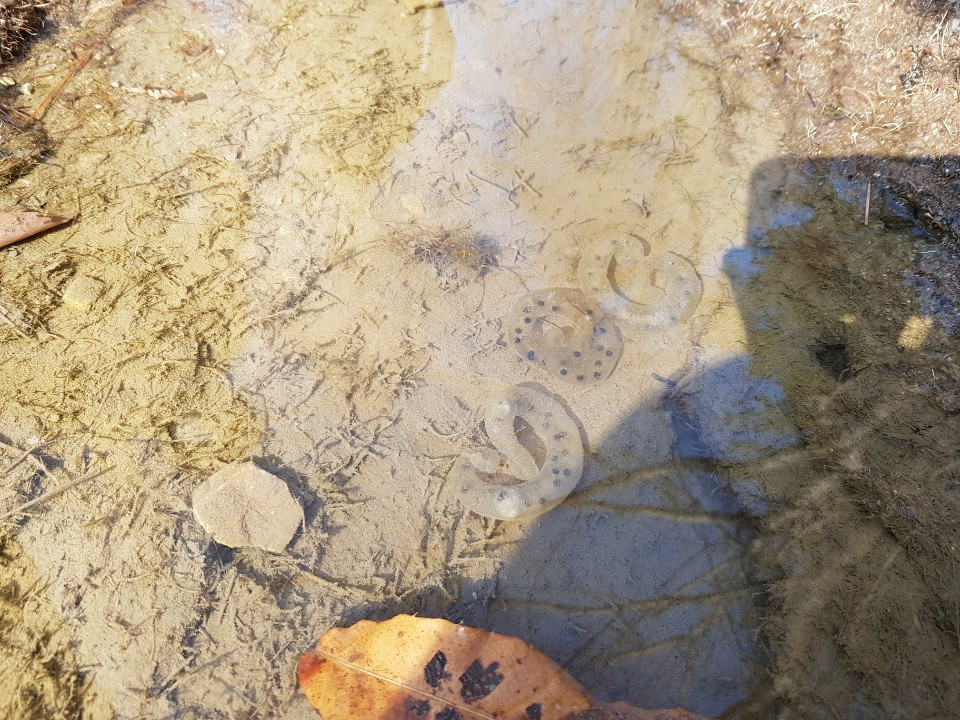 계곡을 올라가다가 만난 순대들,고운 뻘흙이 도롱뇽 알들을 숨기기라도 하듯 켜켜이 덮었습니다.알들이 하얘서 다 죽어버린줄 알았어요.