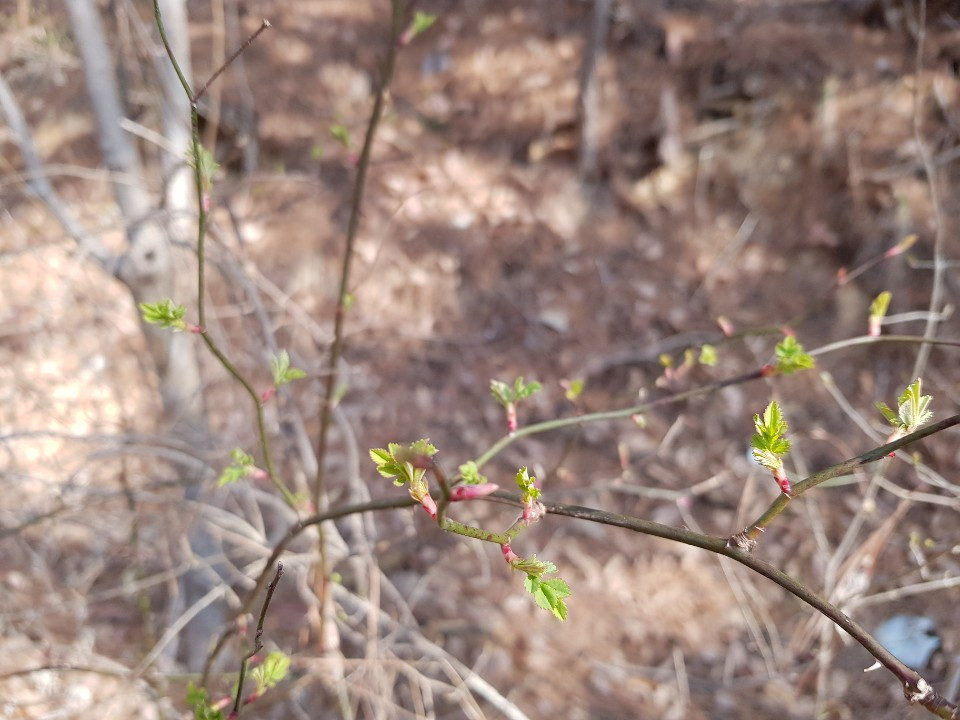 매니큐 바른 것처럼 뾰족 손톱끝이 빨갛던 겨울눈에서 찔레가 새순을 내놨습니다