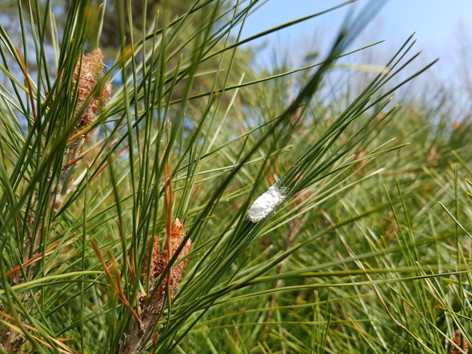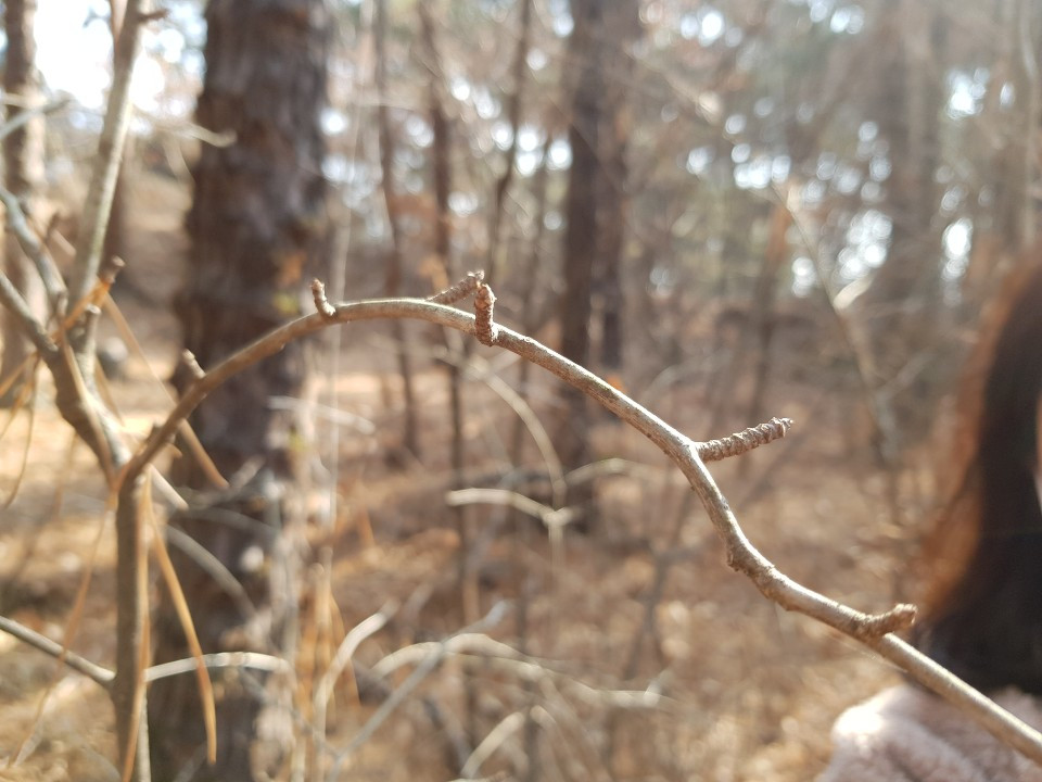 관목이라지만 높다랗게 뻗어나간 가지의 꼭대기에 매달린 좀사마귀 알집을 보는 숲해설가의 시력은