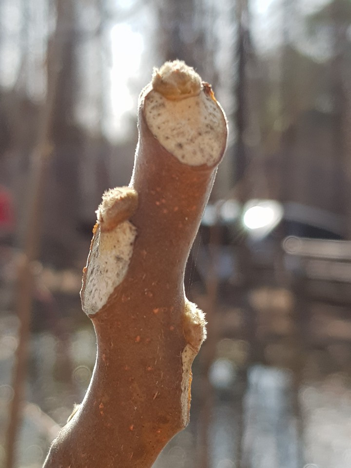 가죽나무의 잎이 떨어진 자리에서 엽흔이 하트를 퐁퐁 날려줍니다