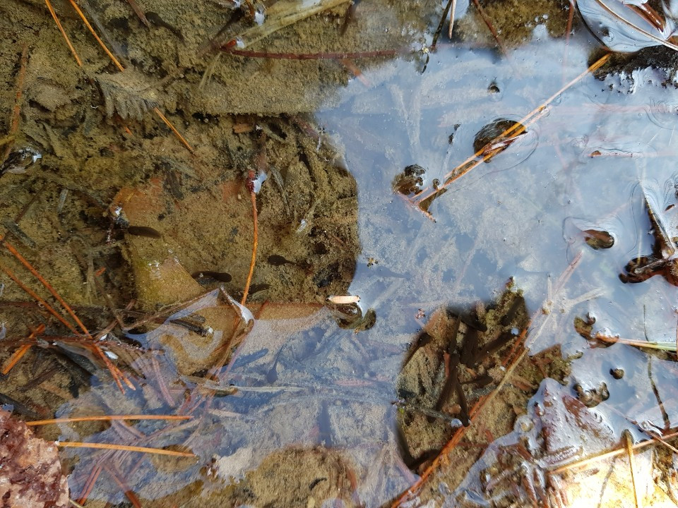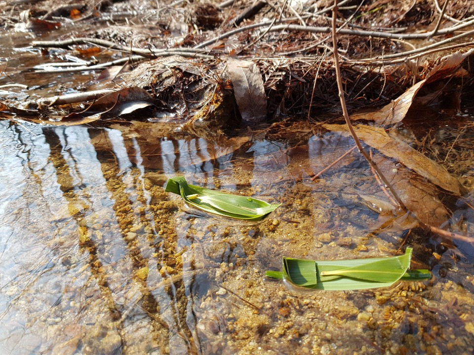 손바닥만한 길가 웅덩이에 해마다 도롱뇽, 개구리들이 알을 낳습니다.