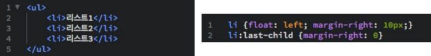 <li>에 간격을 띄우기 위해 margin-right가 들어갔고, nth-child를 사용하여 <li>의 마지막에는 margin-right: 0이 들어가 있습니다. 이러면 무조건 <li>의 마지막에는 margin-right가 0으로 적용이 되겠죠?