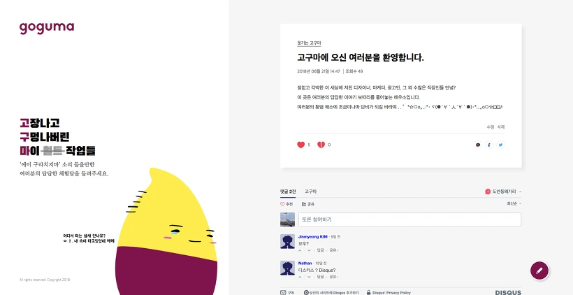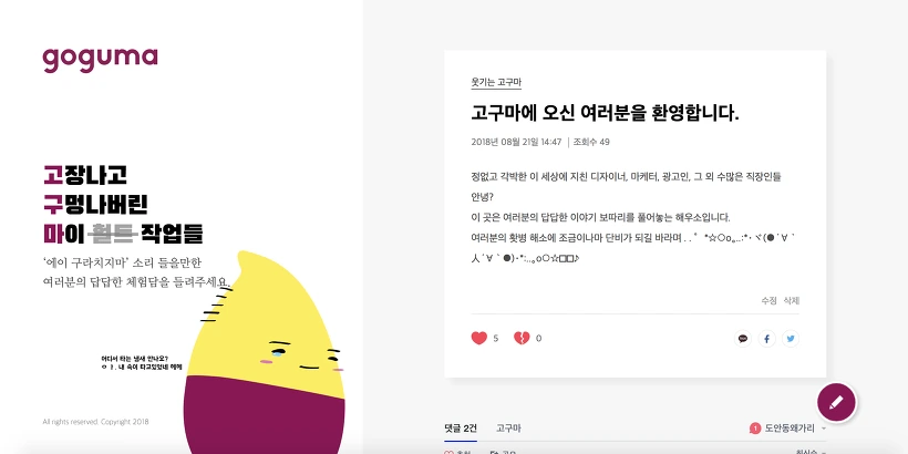 여담인데 고구마라고 저희가 새로 론칭한 웹사이트입니다.