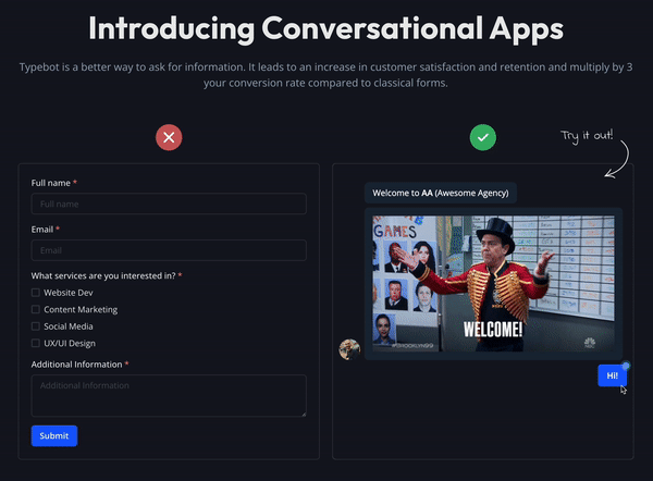 Typebot은 유저가 채팅을 하듯, 설문을 챗봇 형식으로 구성할 수 있는 프로덕트에요.