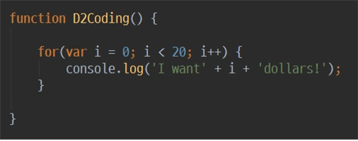 키보드나 마우스의 종류에 따라 팔과 손이 받는 피로도를 줄여준다면, 가독성 좋은 코딩용 폰트 사용으로 눈의 피로를 줄여주는 것도 좋다고 생각합니다.