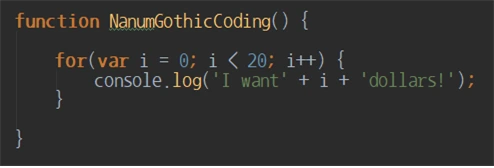 나눔 고딕 코딩체는 2008년 발표된 나눔 고딕을 바탕으로 개발자들의 코딩 환경에 최적화시킨 글꼴입니다.