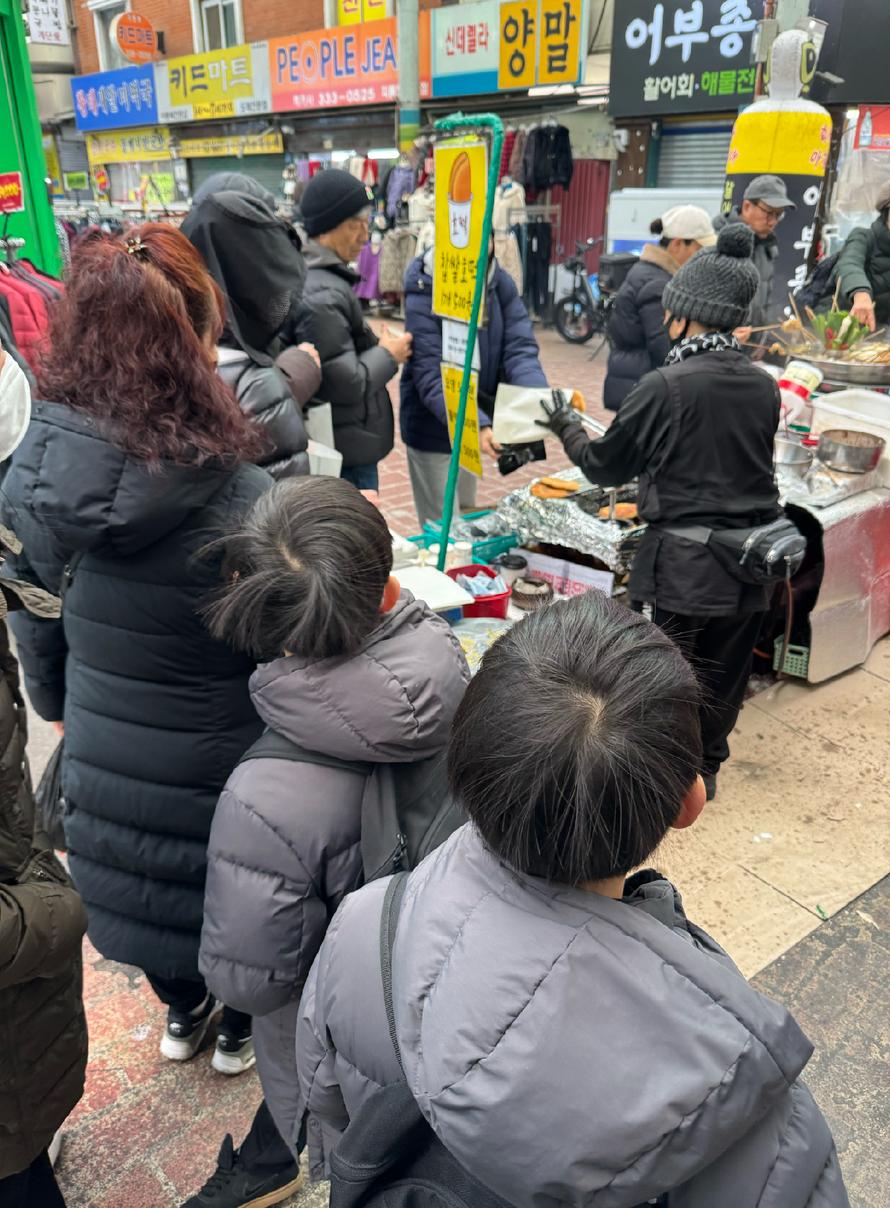 아주머니는 아들에게 호떡을 못 만지게 하시는지 판매가 어렵다고 했고, 저는 근처에 길게 늘어선 대기 줄로 발길을 옮겼습니다.