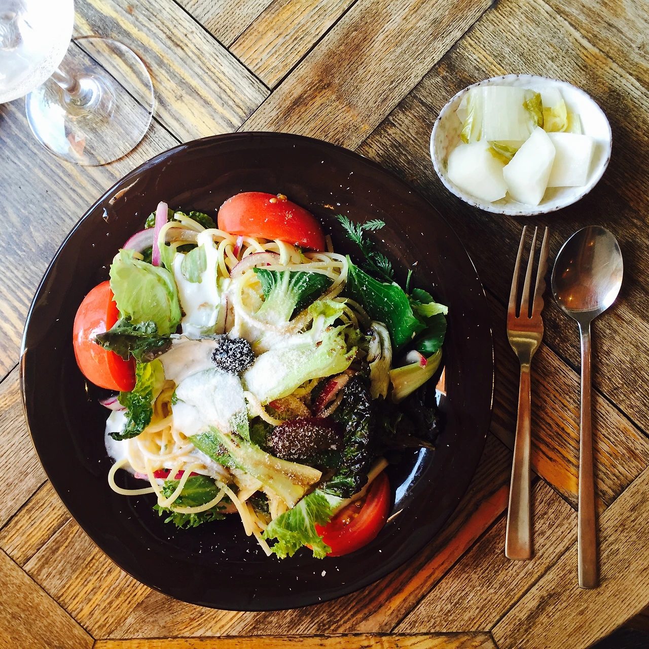 된장 파스타에는 레드와인 대신 다른 선택을 권하십니다.