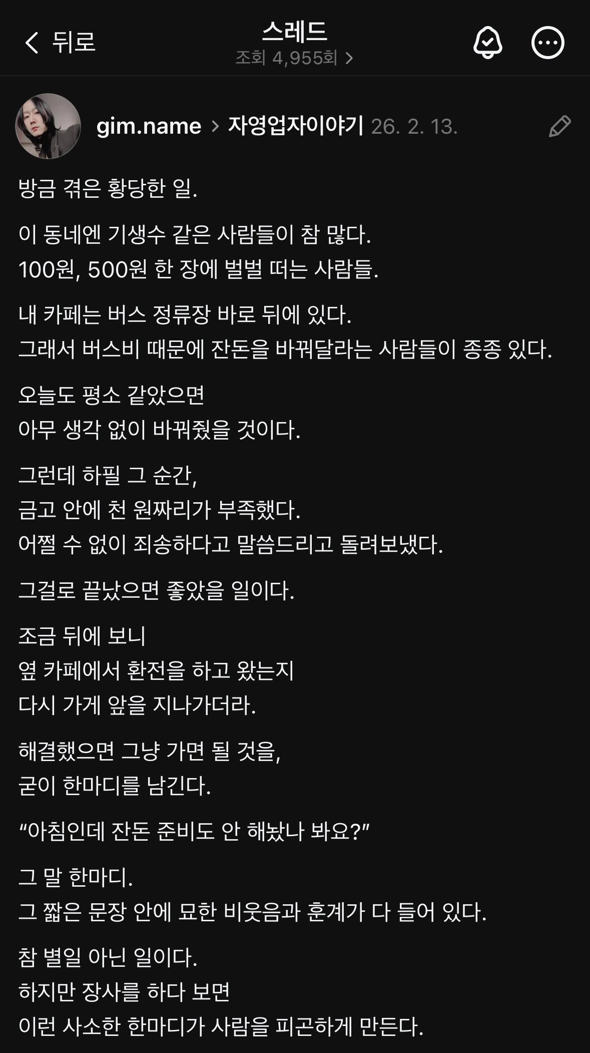 사실 이 글을 쓰면서도 내심 마음 한구석이 가렵습니다. 어쩌면 저는 브런치라는 공간에서조차 '고고한 수행자'를 연기하고 있는지도 모릅니다. 때로는 문장 뒤에 숨어 너스레를 떠는 저의 모습이 가증스럽게 느껴질 때가 있습니다.
