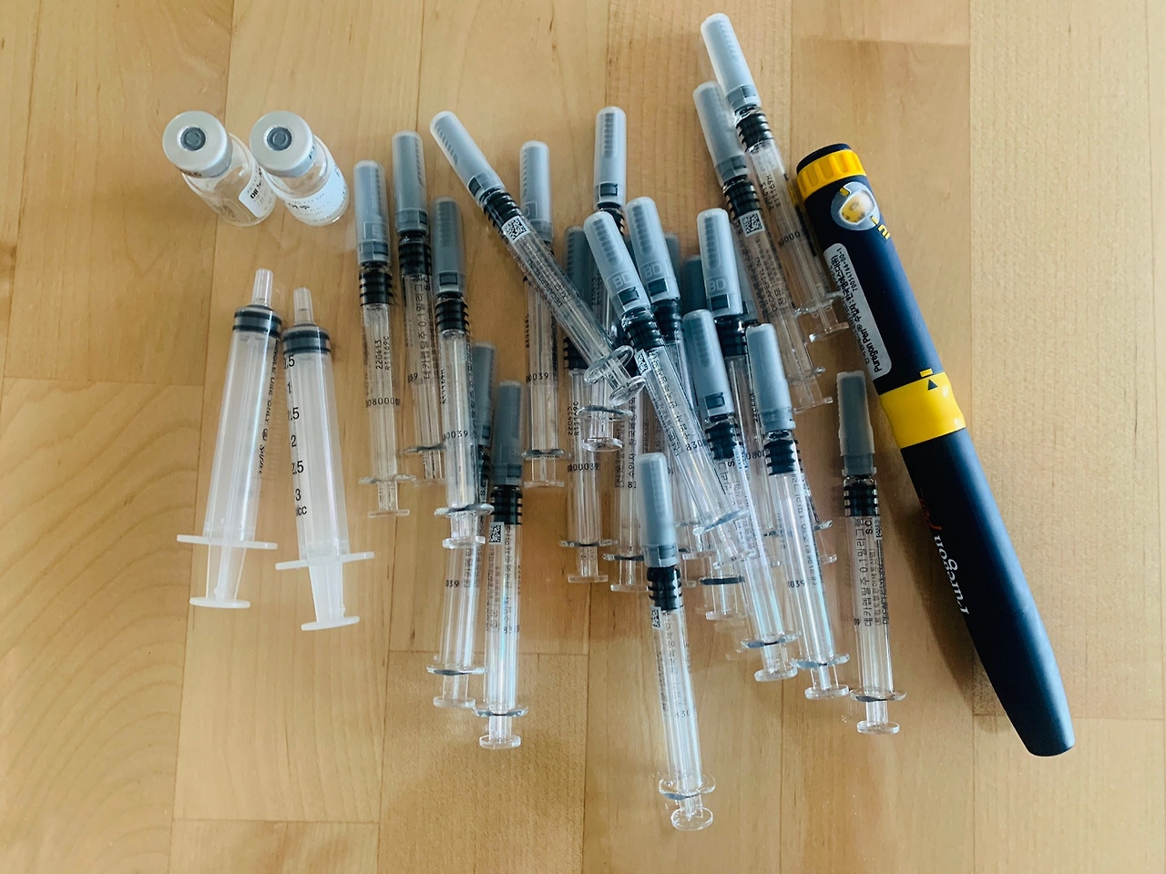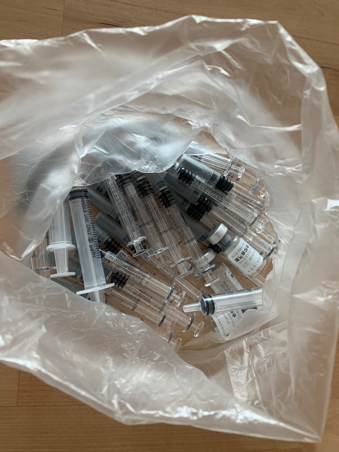 오늘 채취를 했다. 시험관 장기 요법을 5.9(토)부터 시작했으니 딱 한 달 걸린 셈이다. 데카펩틸 25번, 퓨레곤 2175미리, 메노푸어 5번, 오비드렐 1번으로 자가 배 주사를 무려 42방 맞았다. 2주가 소요됐던 단기요법에 비하면 지루한 시간이었지만 '결과만 좋다면..' 하는 마음으로 간절하게 임했다. 주사 입구를 소독하고, 바늘을 꽂고, 약을 용량에 맞추고, 배를 소독하고, 주사기를 배에 꽂고, 약물을 쭉 주입. 이제는 소꿉놀이하듯 적응했다. 아픔도 없다. 무엇보다 내 몸을 제일 잘 아는 수간호사(?) 남편이 있으니 걱정도 없다.