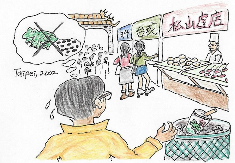 그러면서 부연 설명을 하길, 요즘 타이페이에서는 개구리알을 넣은게 최고 인기란다. '뭐, 개구리 알???' 순간 움찔했으나, 경험을 최고의 미덕으로 여기는 나 아니던가. 그래 마다하지는 말자. 그래도 이건 왠지 좀... 조금 맛만 보는 것으로 하면 어떻겠냐는 나의 '소심한' 제안을 단칼에 거절한 첸은 세 개를 사서 하나씩 나눠줬다.