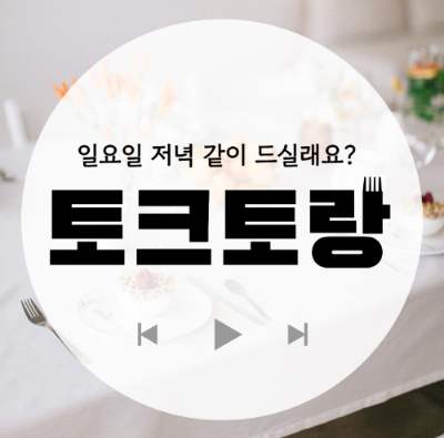 우리 팟캐스트, <토크토랑>은 매주 일요일 저녁에 찾아오는 토크 레스토랑으로 맛있는 음식과 함께 지난 한 주를 마무리하고 새로운 한 주를 기대로 마주하기를 꿈꾼다. 매일이 기대되는 삶의 레시피를 제공하는 것이 우리가 매주 토크토랑을 채워가는 이유다. 월요일을 앞두고 지치고 피곤한 일요일 저녁이 아니라, 일상의 즐거움과 행복의 방법을 발견하는 시간. 어쩌면 토크토랑은 이걸 꾸려가는 우리에게 더 큰 에너지와 좋은 삶의 레시피를 제공하고 있는 건지도 모른다.