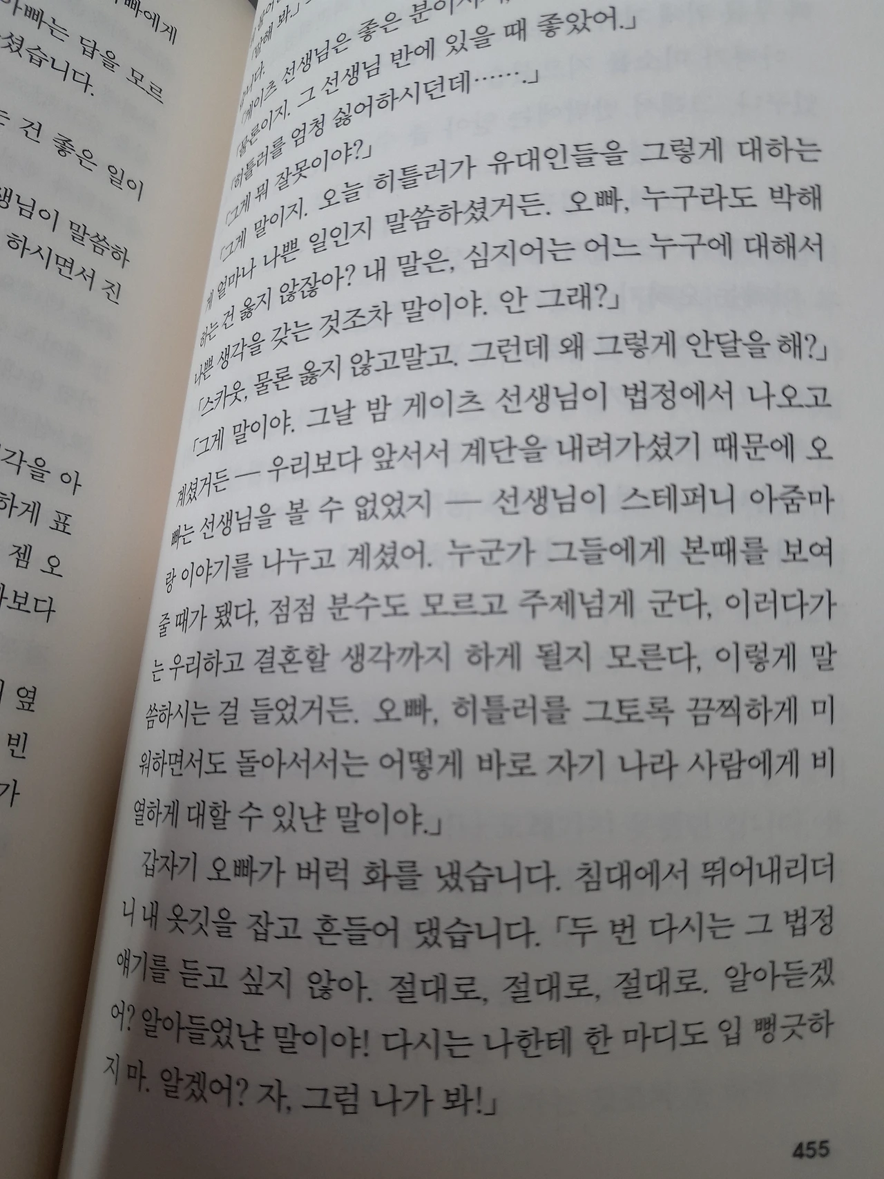 이 소설의 화려한 업적이라든가 n쇄째라는 인쇄 기록은 오히려 '나 아니라도 읽을 사람이 널리고 깔린 책 같은데 그냥 읽지 말까. ...두껍군-_-. 구태여 안 읽어도 읽은 사람들이 말하는 걸로 십시일반이겠는데-' 싶게 만든다.