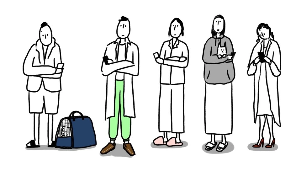 이른 아침임에도 외출할 때처럼 잘 차려입은 신사, 숙녀도 있다. 하지만 상당수는 외투만 겨우 여미고 겨드랑이에 양손을 끼운 채 발을 동동 인다. 아 추워. 겉옷도 없이 홑겹 실내복에 짝짝이 신을 신고 오돌오돌 떠는 이의 수도 제법 된다. 수십 명이 모였음에도 대화 한 마디 없다.