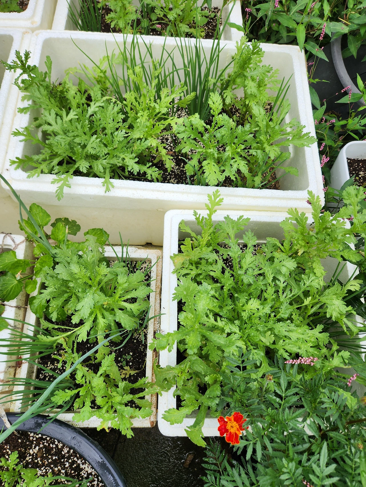체질이 변했는지 풀밭에 가면 풀독이 올라 여기저기 벌레에 물린 것처럼 빨갛게 되고 몹시 가려워 궁리 끝에 마당 가장자리에 화분을 늘여가며 산에 가서 흙을 퍼다가 채소를 심는 것이다.