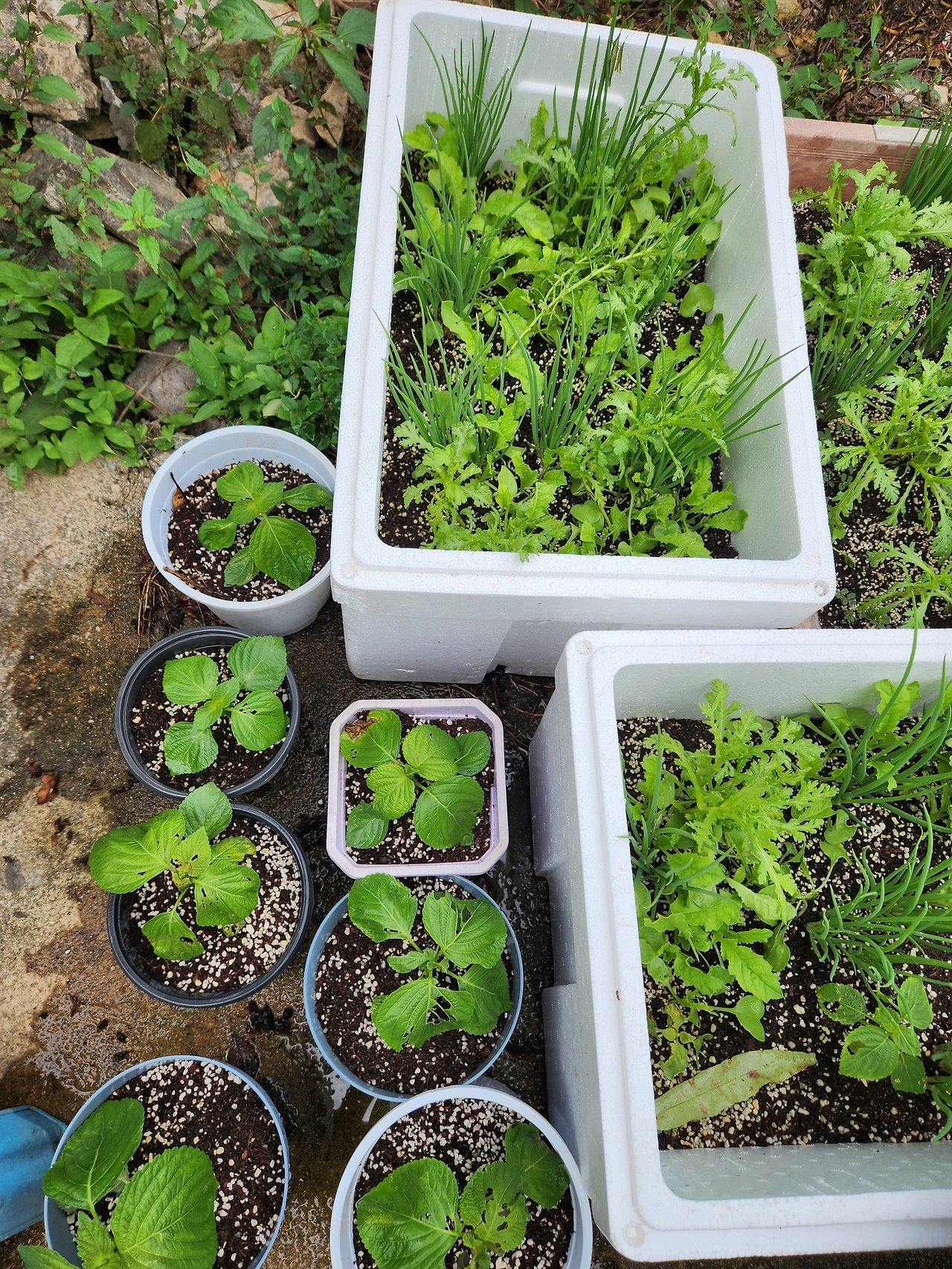 마당 가장자리에 놓으니, 물 주기도 좋고, 밭에 갈 때처럼 장화를 신지 않아도 되고, 이렇게 기르는 채소로 충분히 반찬을 만들어 먹으니 생활에도 보탬이 되고 무엇보다 농약을 쓰지 않고 기르는 건강한 채소를 먹는 즐거움이 날만 새면 일하고 싶어 부지런히 아침을 먹고 밖으로 나가는 것이다.