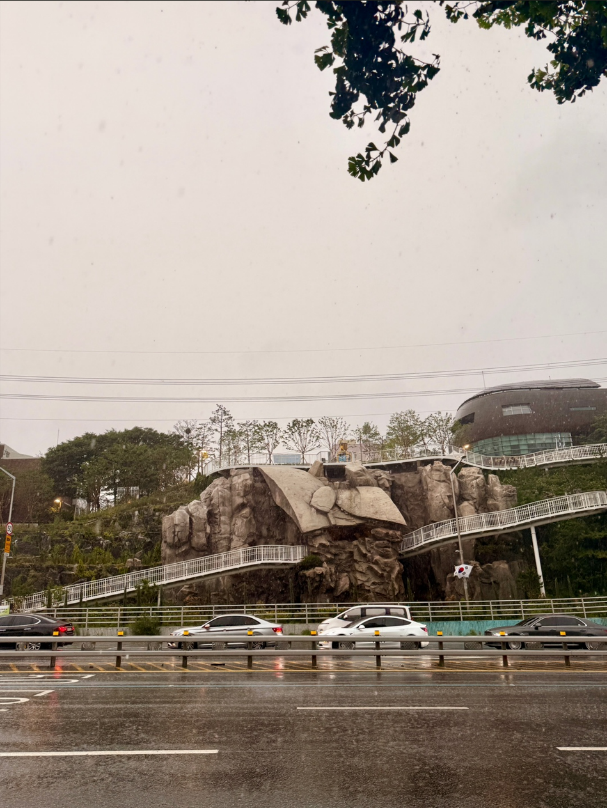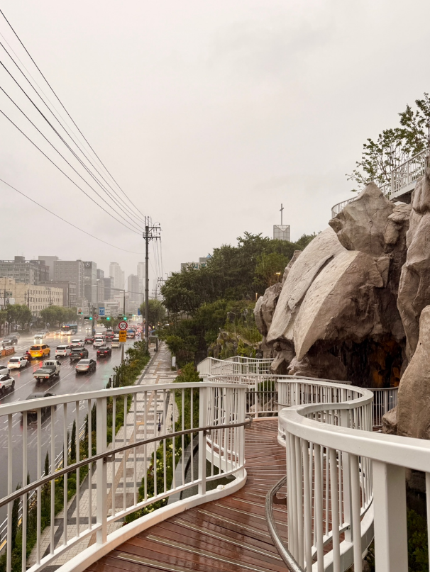 아빠와의 산책 이후로 나는 금천폭포공원이 마음에 들어서 몇 번더 들르곤 했다. 지금까지 금천구의 전경은 안양천과 쭉 뻗은 다리를 담는 모습이었고 조금 뻔하게 보였는데 경기와 서울을 잇는 바로 그 길목이 드론이 내려다보는 것처럼 혹은 새의 시각에서 전망을 한눈에 보는 뷰가 나에게는 새롭게 보였다.