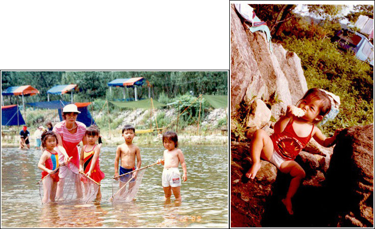 '레린이' 두부의 유년시절. 여자아이임에도 웃통을 까고 있는 두부(왼쪽)와 쩍벌 두부. ⓒ두부 제공