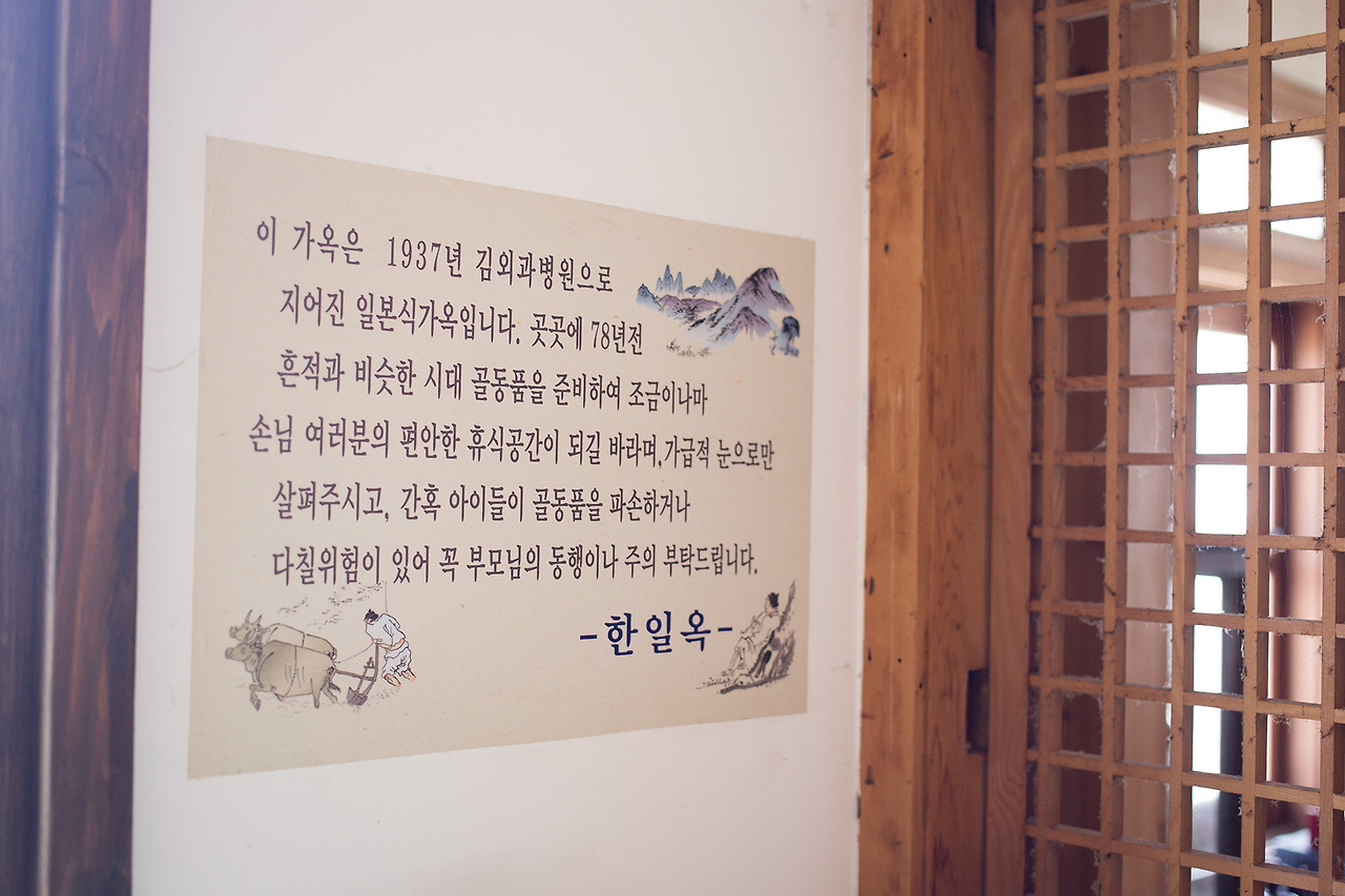 1937년 김외과병원으로 지어진 일본식 가옥 한일옥은 지금은 식당이지만, 손님들이 식사를 기다리는 동안 둘러볼 수 있는 다양한 골동품이 전시되어 있었다. 물론 식사도 훌륭했지만 골동품들도 아주 흥미로웠다.