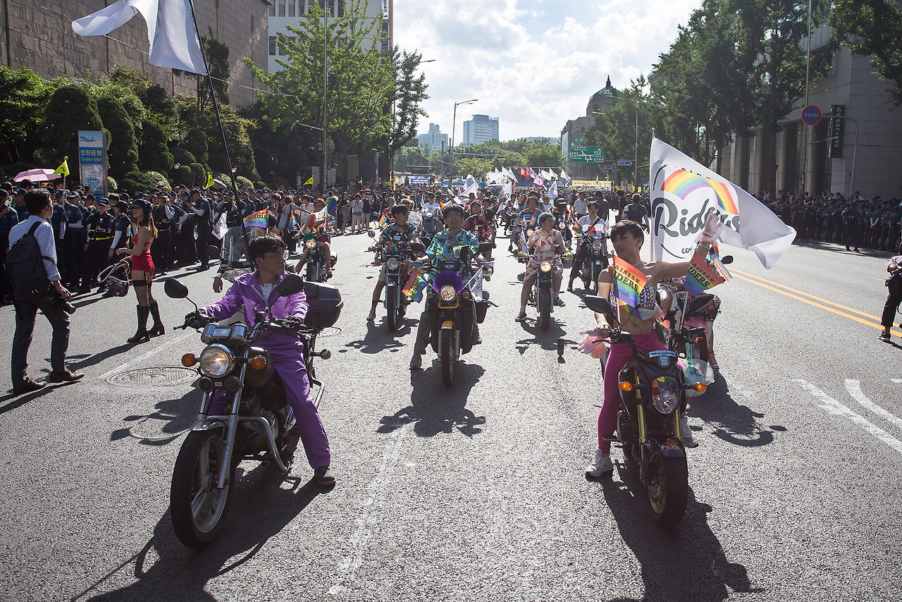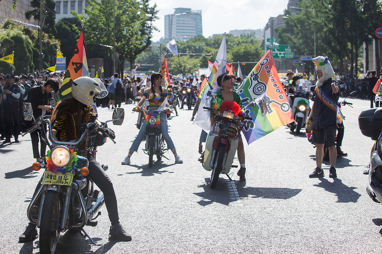 서울 퀴어문화축제에 모이는 레인보우 라이더스는 바이크의 종류, 라이더의 성 정체성과 성적 지향, 나이에 따라 구분 짓거나, 차별하지 않는 ‘무지갯빛’ 바이크 라이더들이다.