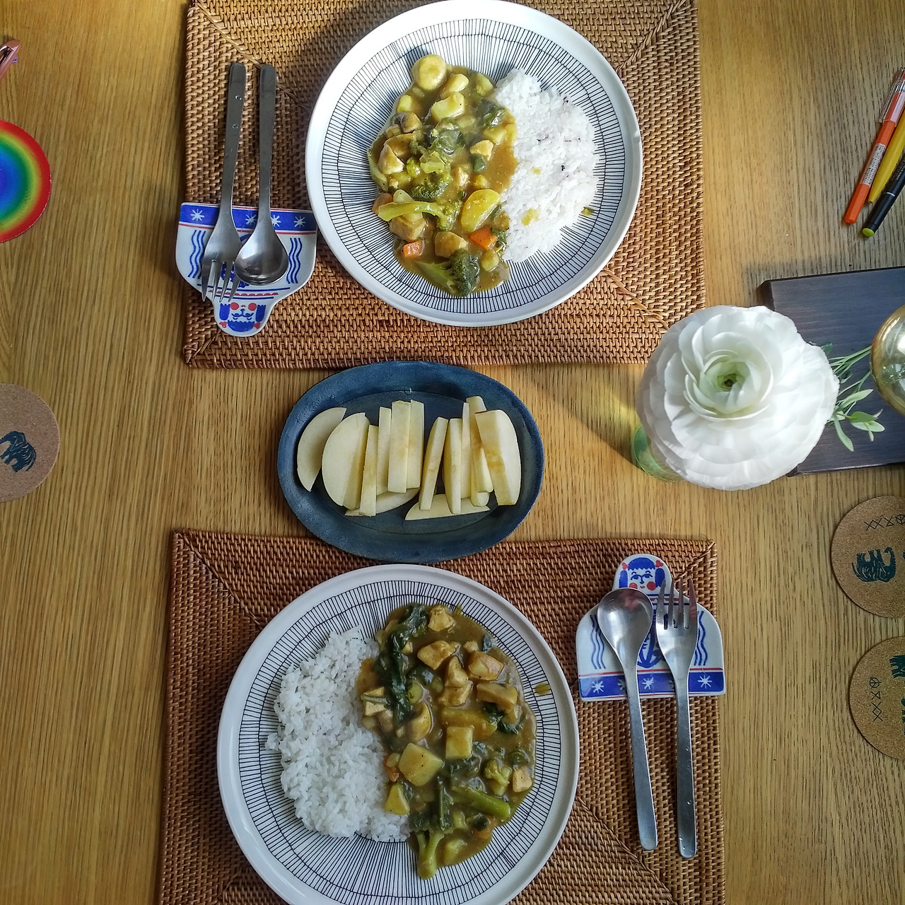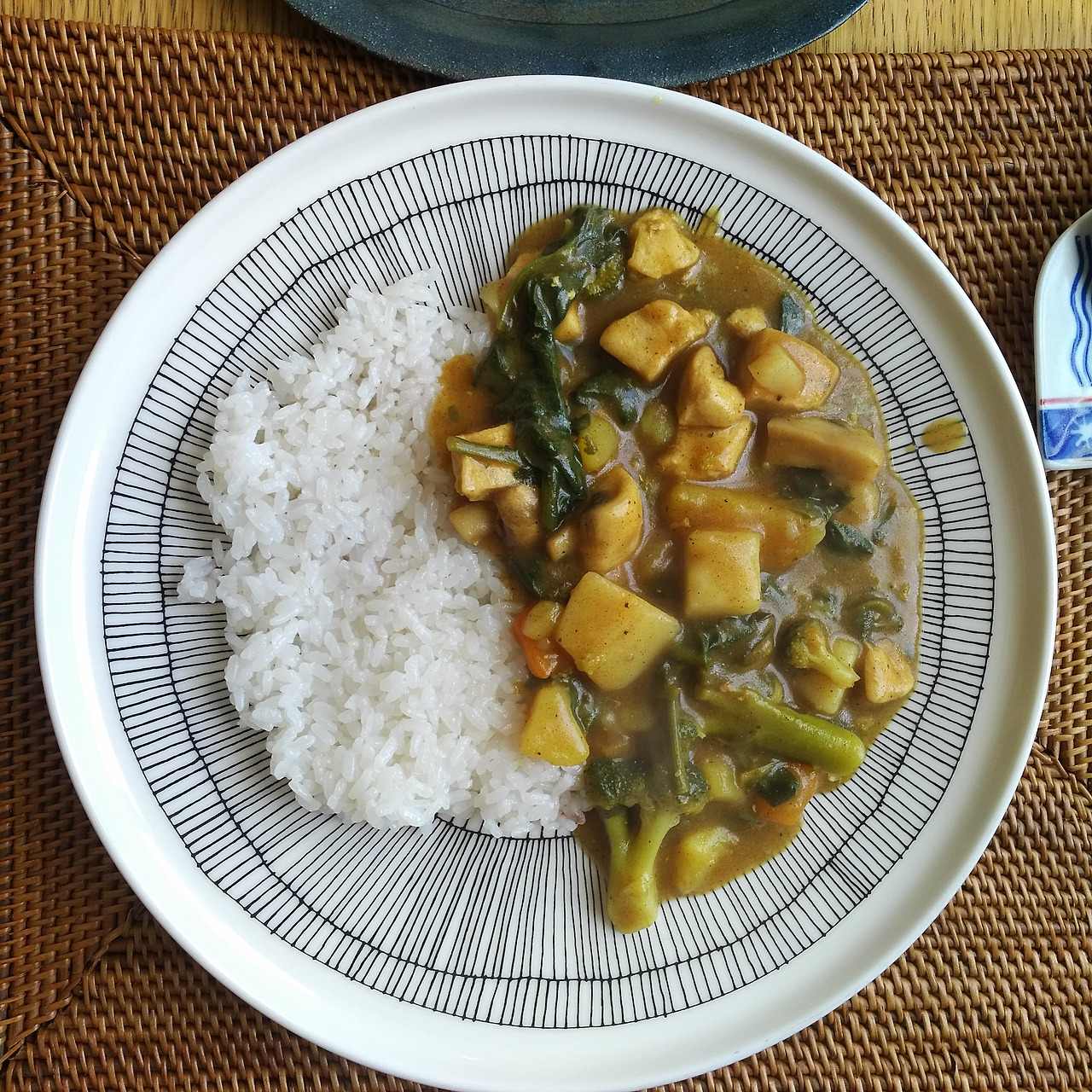 닭가슴살을 포함한 모든 속재료도 맛있게 잘 익었다. 적당히 뻑뻑해진 카레를 밥알들과 한 입에 떠먹으니 고소하고 단 맛에 침이 절로 고였다. 난 시금치를 별로 안 좋아해서 시금치 맛이 날까봐 걱정했는데 카레가 모든 재료들의 맛을 덮어줘서 채소들까지 다 싹싹 긁어먹었다.