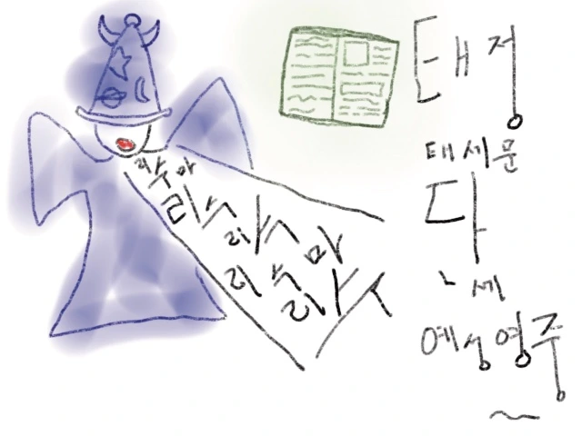 시험기간이 다가오며 점점 조여 오는 긴장감과 날이 선 듯 날카로운 예민한 신경이 중얼님들을 자극합니다. 자신도 모르게 불안을 달래려 입으로 안정을 취하시는 분들도 가끔 계십니다. 이분들은 중얼중얼 자신의 암기과목을 외우기도 하죠. 제가 귀를 기울이지 않고 듣게 되면 마법사들의 주문 같습니다. 리수리수 리수마 리수리수 리수마(수리수리 마수리 × 2)