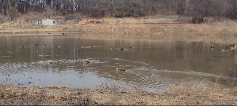 산수유꽃, 제비꽃, 개나리 꽃봉오리가 곳곳에 있었어요. 봄채집을 하고 물 고인 논에서 수영하는 오리들도 만났어요~