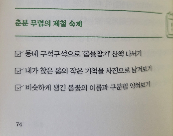 지난주에 '춘분'이 있어서 김신지 작가님의 《제철행복》의 절기 숙제대로 봄채집에 나섰어요.