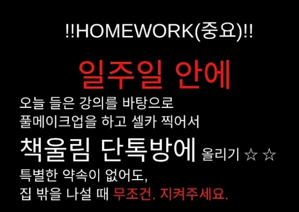 강의 주제는 <나의 숨은 아름다움 찾기>였고 얼굴형과 특징, 장점은 살리고 단점은 커버하는 메이크업을 공부하고 찾는 아주 멋진 시간이었답니다~